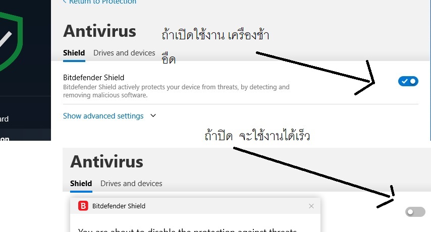 คอมที บ้าน ถ้าเล่นเนต เเละ เปิดใช้ งาน bitdefender เครื่องจะอื่ดช้า ถ้า ปิด เครื่องจะเร็ว