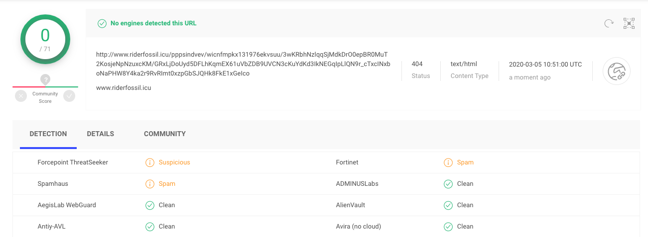ซึ่งถ้าเราเอา URL ไปสแกนด้วย virustotal.com จะได้ผลดังนี้ครับ
