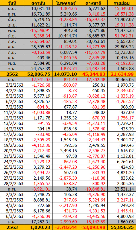 Sinthorn Summary 6/3/2563 : ต่างชาติขายสุทธิ -3,435.56 ลบ.