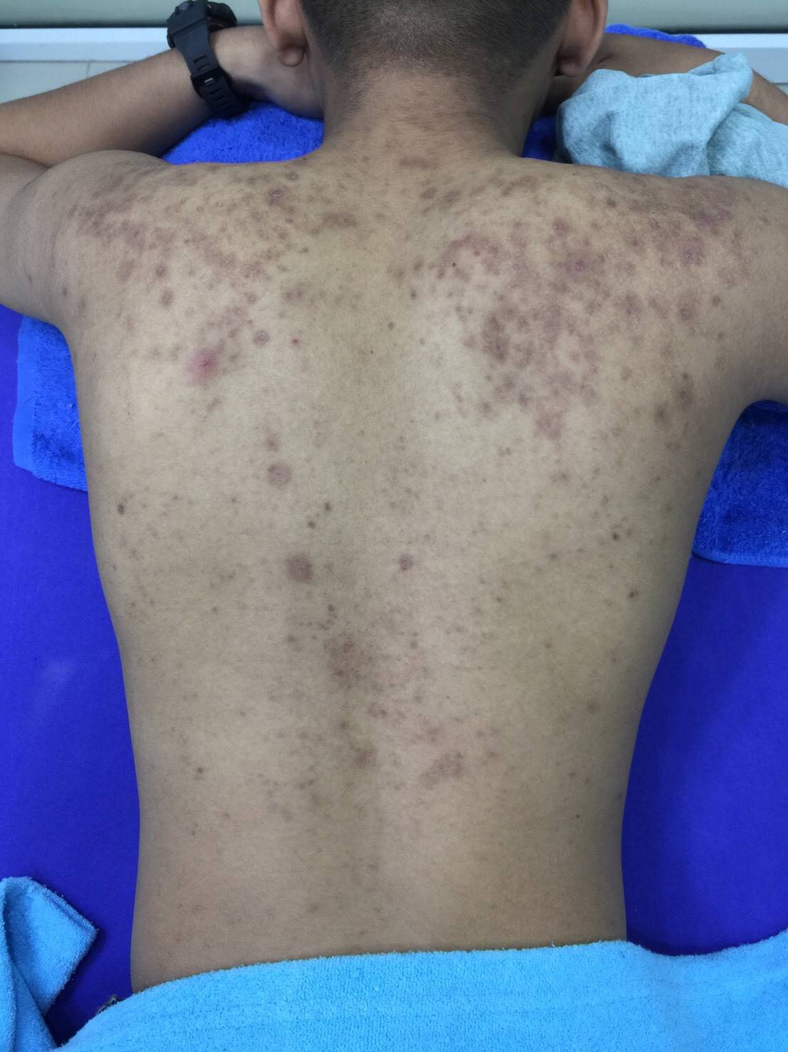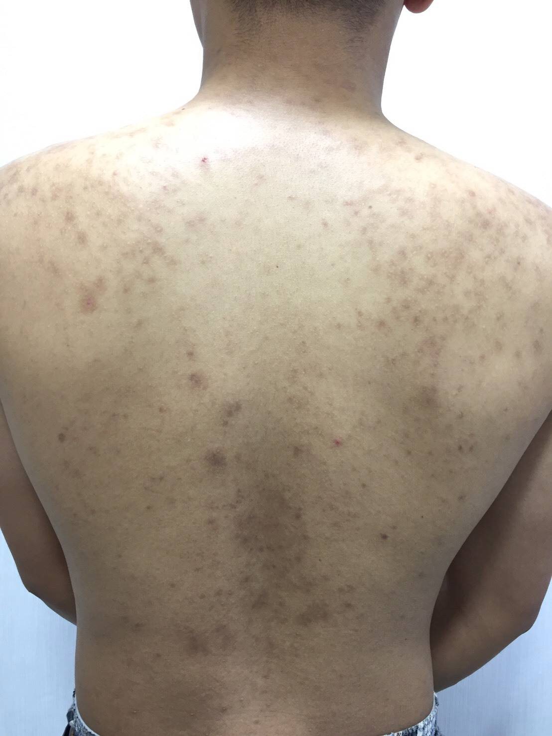 สวัสดีครับเพื่อน ๆ ชาวพันทิพย์ วันนี้ผมถือโอกาสมาแชร์ประสบการณ์รักษาสิวที่หลังให้สำหรับคนที่มีปัญหาเช่นผม คือผมทำอาชีพตำรวจครับ ปกติทำงานเป็นกะ บางคืนเข้ายาวยันเช้าก็เลยไม่ค่อยมีเวลาอาบ สิวก็ขึ้นไม่หยุด​ หลายปีมากๆครับ​ เป็นหนองเป็นรอยดำเป็นปื้นๆ​ คือเยอะมากจนเครียด ระยะแยกที่เป็นผมลองรักษาด้วยตัวเอง หาข้อมูลในอินเตอร์เน็ตบ้าง ฟังพี่ ๆ ตำรวจรอบข้างบ้าง ก็เลยเริ่มจากแป้งน้ำตัวดัง ที่เค้าว่ารักษาได้กับสิวทุกประเภท ทาไปยังไม่ทันพ้นครึ่งขวด รู้สึกสิวเพิ่มขึ้นครับ อาจจะเพราะผมไม่ถูกกับยานี้จริง ๆ เลยไม่มั่นใจในการรักษาด้วยตัวเองแล้ว เลยลองเสิชหาคลินิกรักษาดู