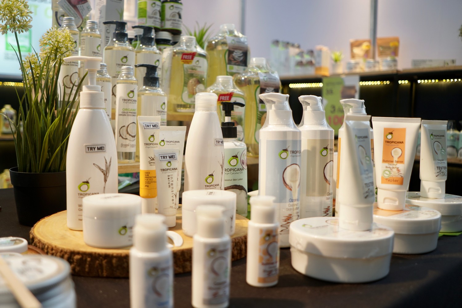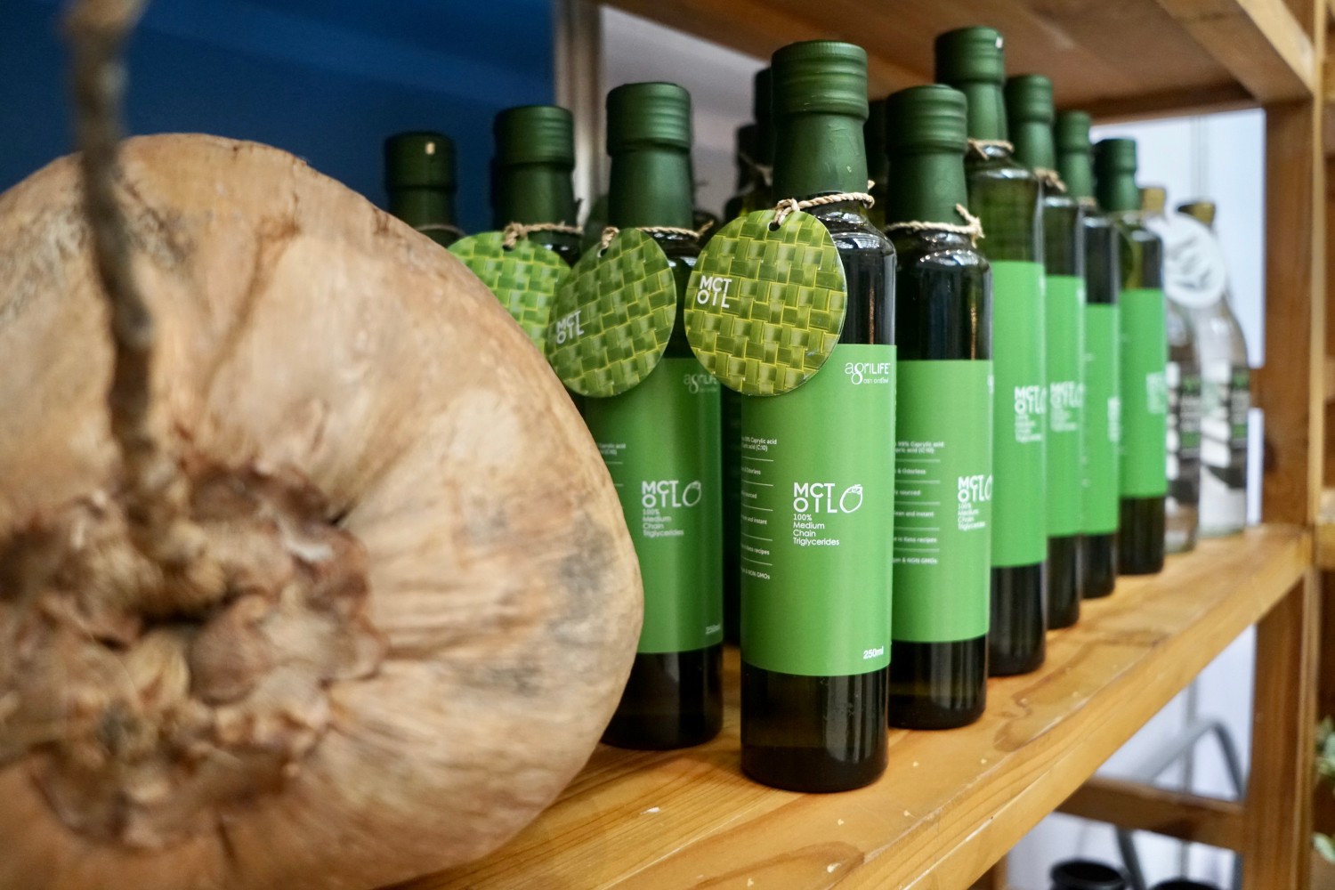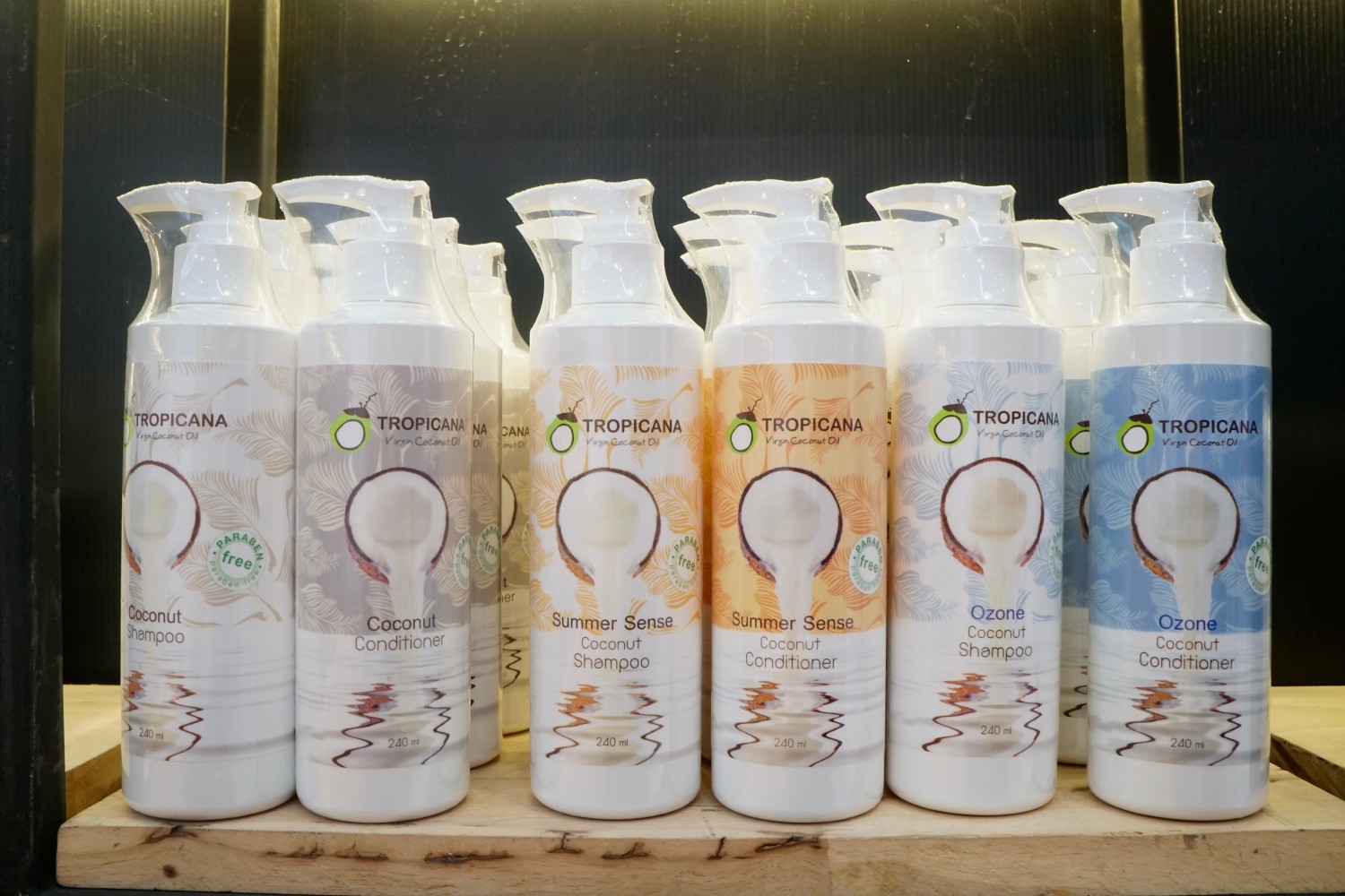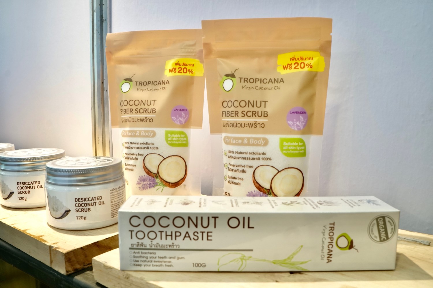 สิ่งแรกที่สดุดตาคือสินค้าที่ทำมาจากมะพร้าว