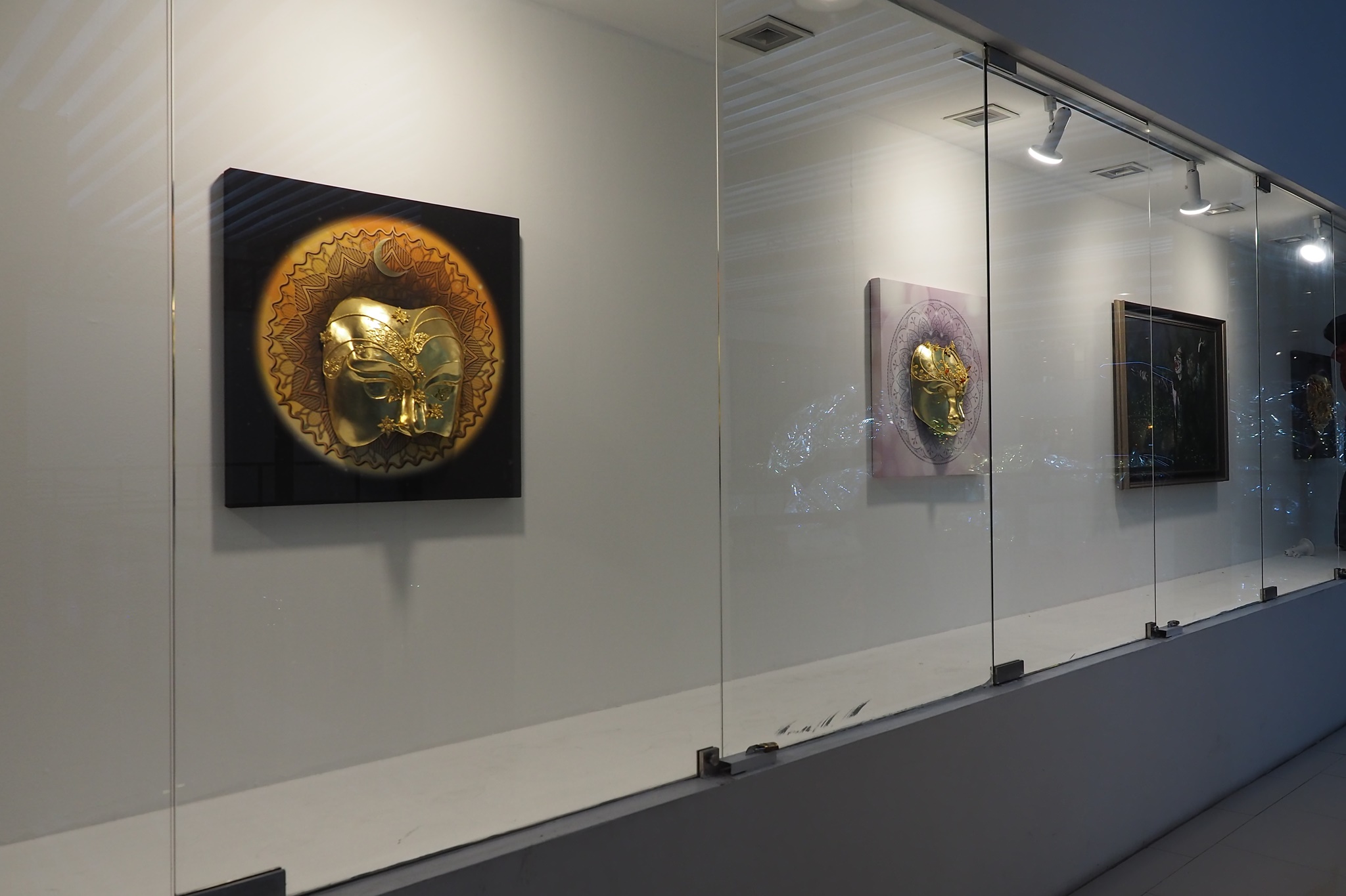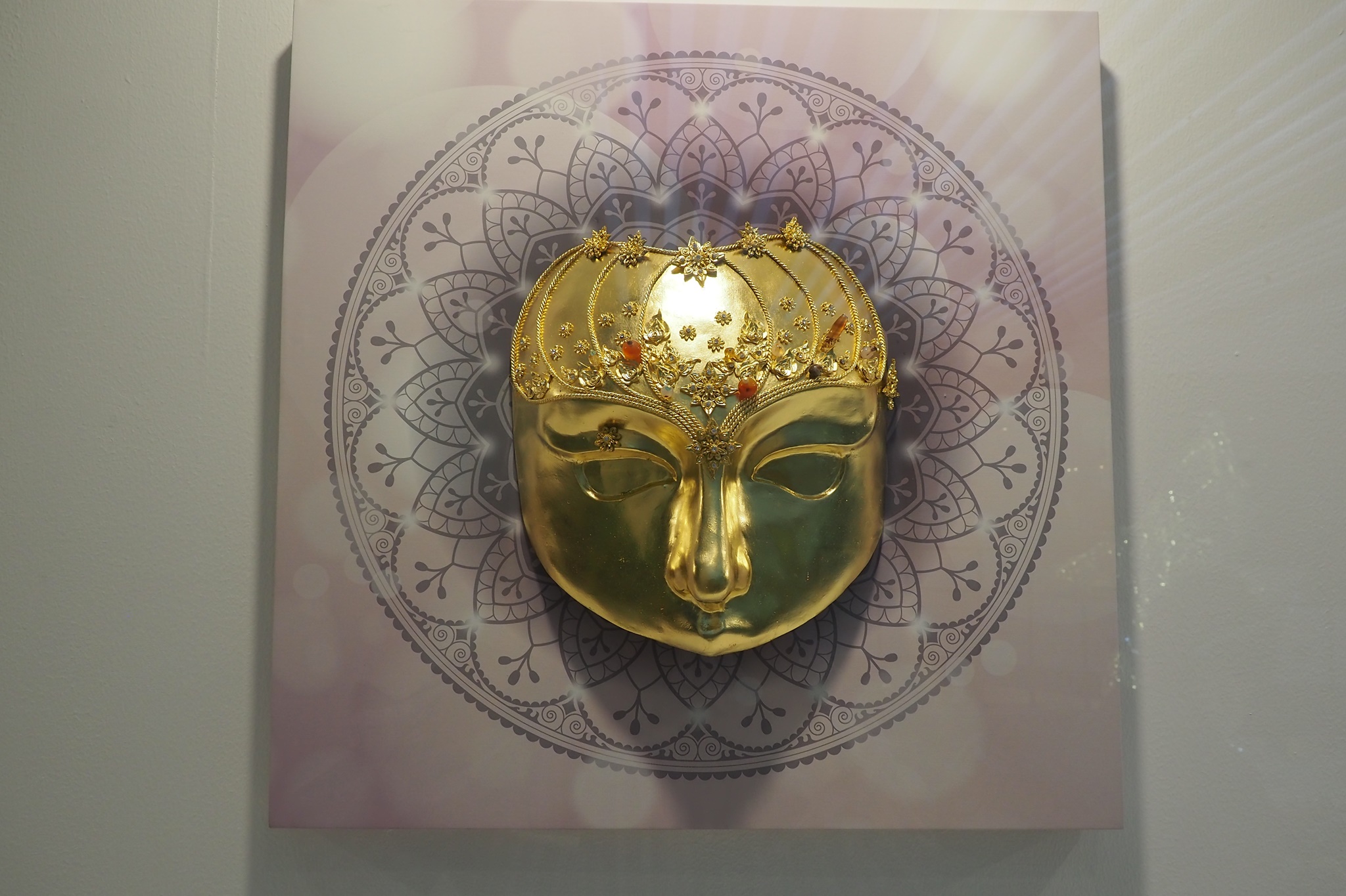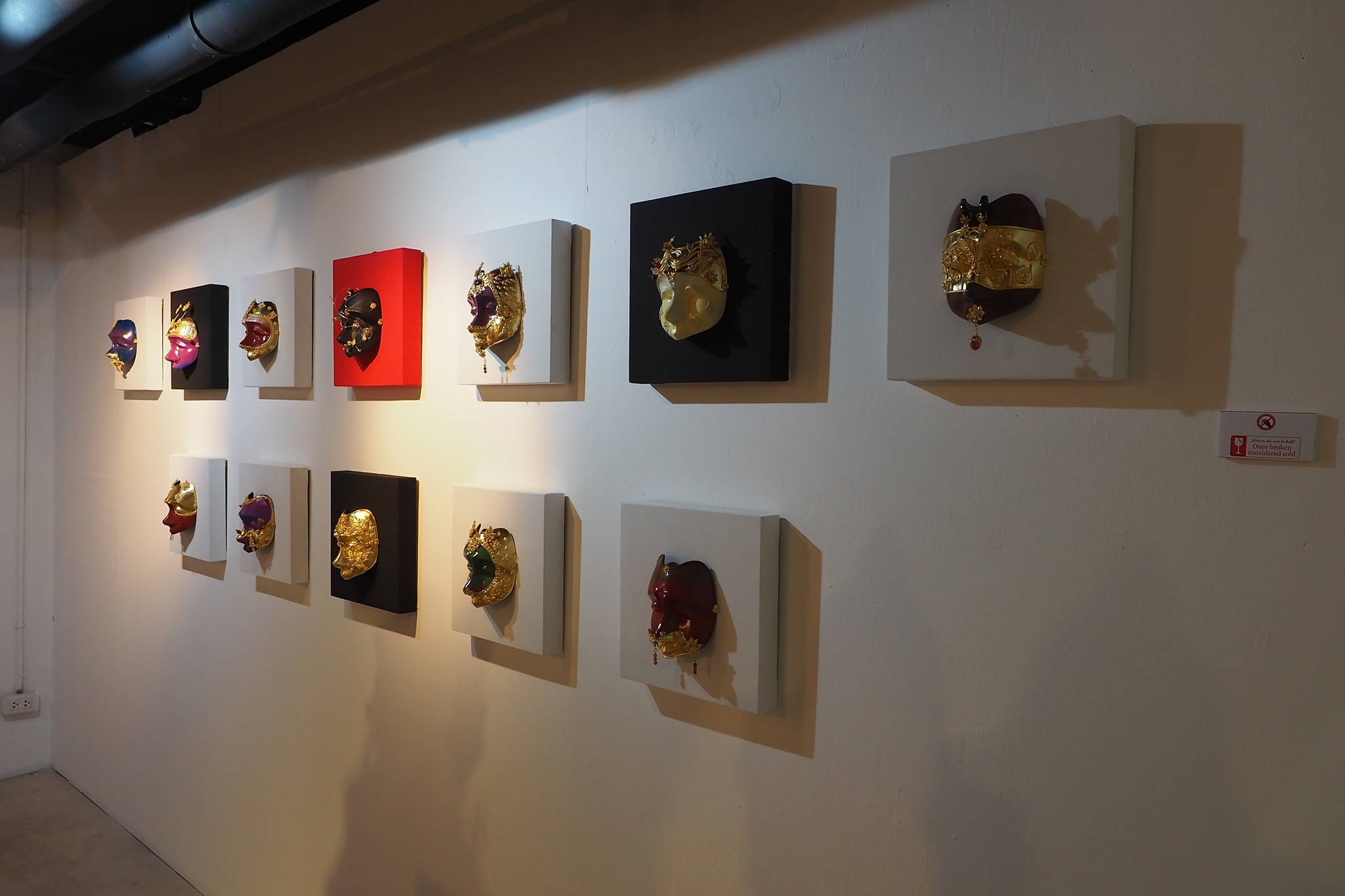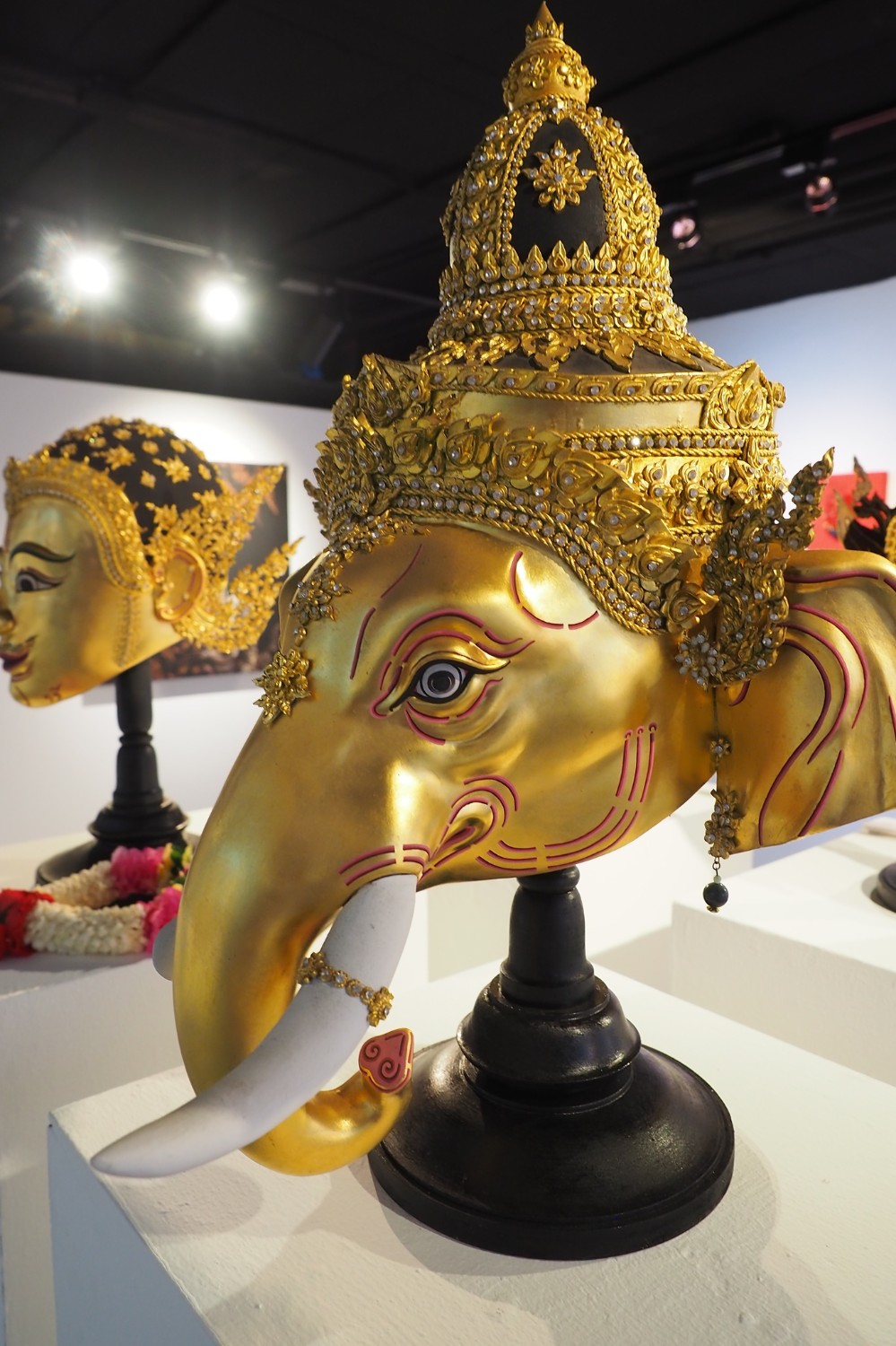 ผลงานหน้ากากของอาจารย์หน่อยมีความหลากหลายดีครับ คือสำหรับตัวผมคิดว่างานหน้ากากอาจจะออกจากงานหัวโขนไปได้ห่างสักนิดหนึ่ง อาจารย์หน่อยเลยสร้างสรรค์ได้หลากหลายกว่าครับ โดยเฉพาะหน้ากากชิ้นใหญ่ที้เป็นหน้ากากแมนดาลา ผมคิดว่าถ้าฝรั่งมาชมแล้งฝรั่งน่าจะเข้าใจการผสมผสานระหว่างสัญลักษณ์ตะวันตกกับรูปลักษณ์ตะวันออกได้ดีเลยครับ ผลงานชิ้นนี้สำหรับผมดูแล้วมีพลังอย่างมากมาย ผมชอบมากครับ