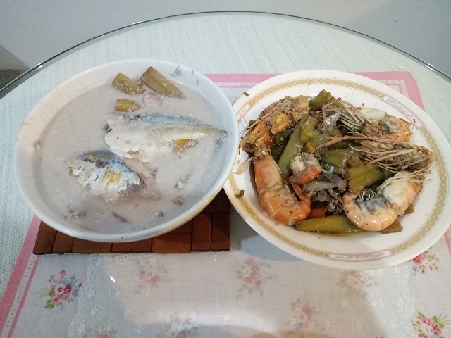 ต้มกะทิสายบัวปลาทูนึ่ง-ผัดสายบัวกุ้งสด