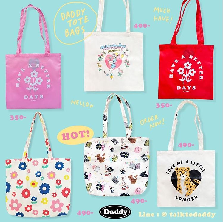 แบรนด์สุดคิ้ว มีสินค้าให้เลือกหลากหลาย ทั้งเสื้อผ้า กางเกง กระโปรง หมวก และหนึ่งในนั้นยังมีถุงผ้า ลายน่ารักๆๆ แวะเวียนออกมาให้ชมแต่ละคอลเลคชั่น ขายดีตลอด