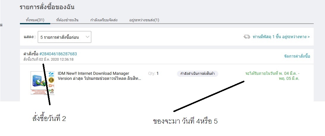 สั่ง สิน ค้า lazada วันที 1 มี ค ทางร้าน นัดว่า จะส้ง ให้ 4 ถึง 5 มีค