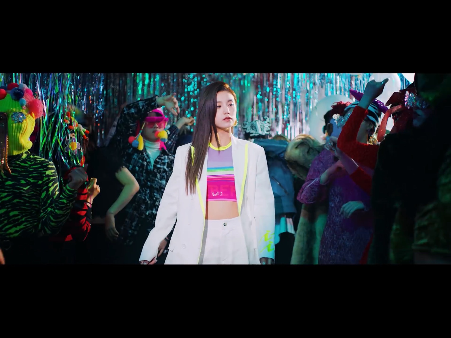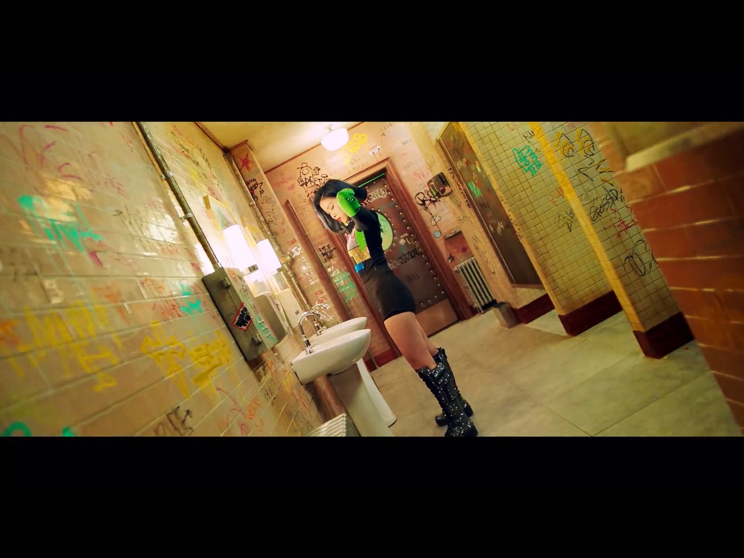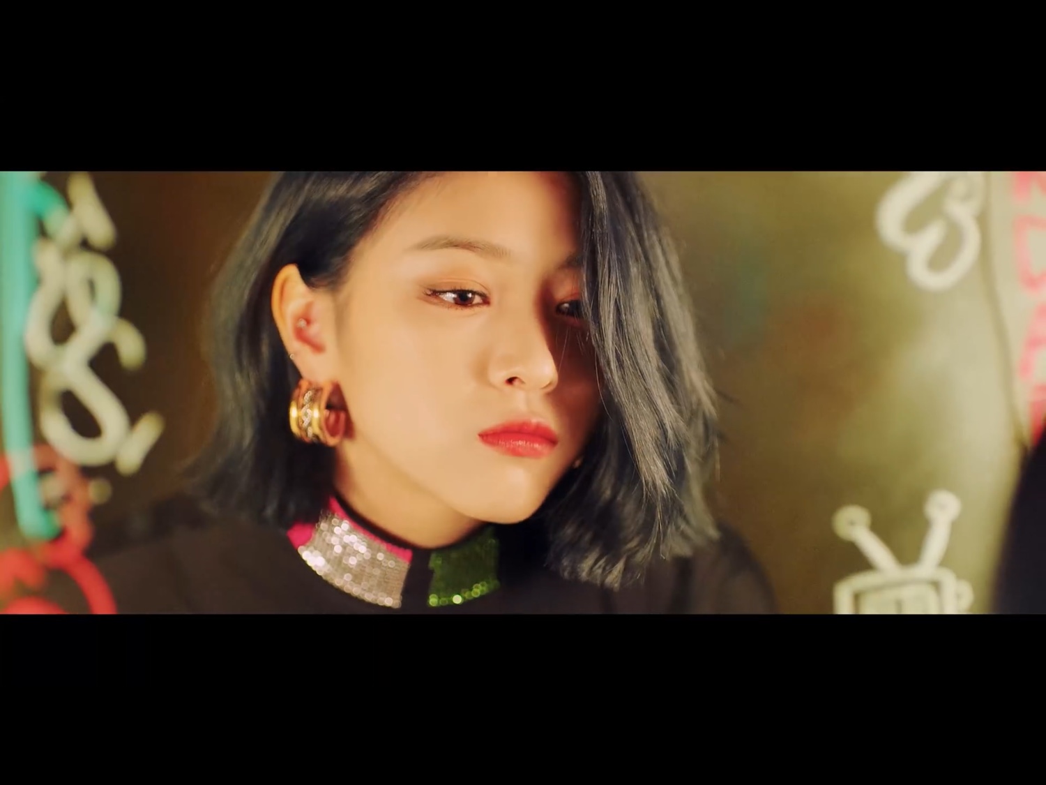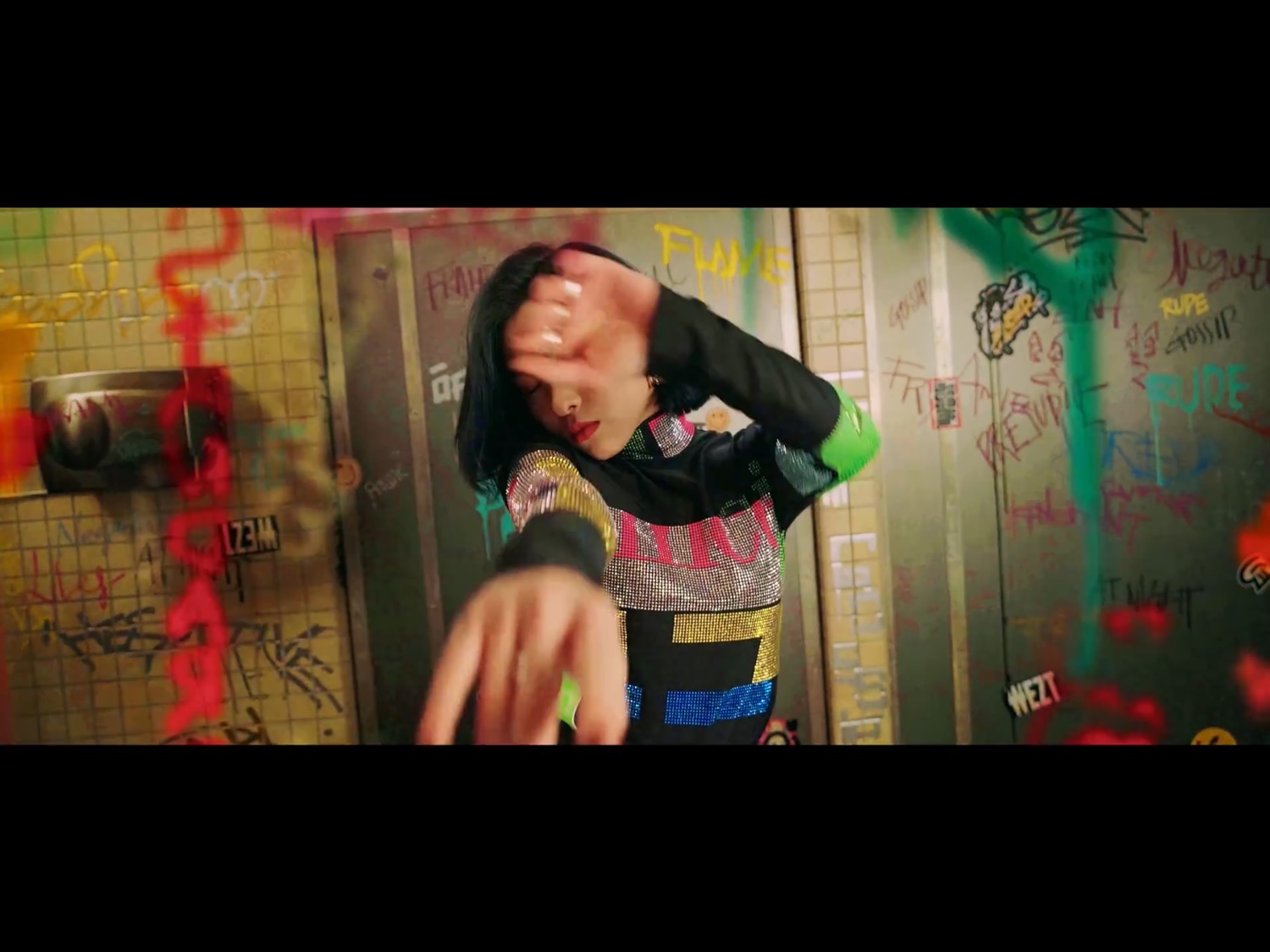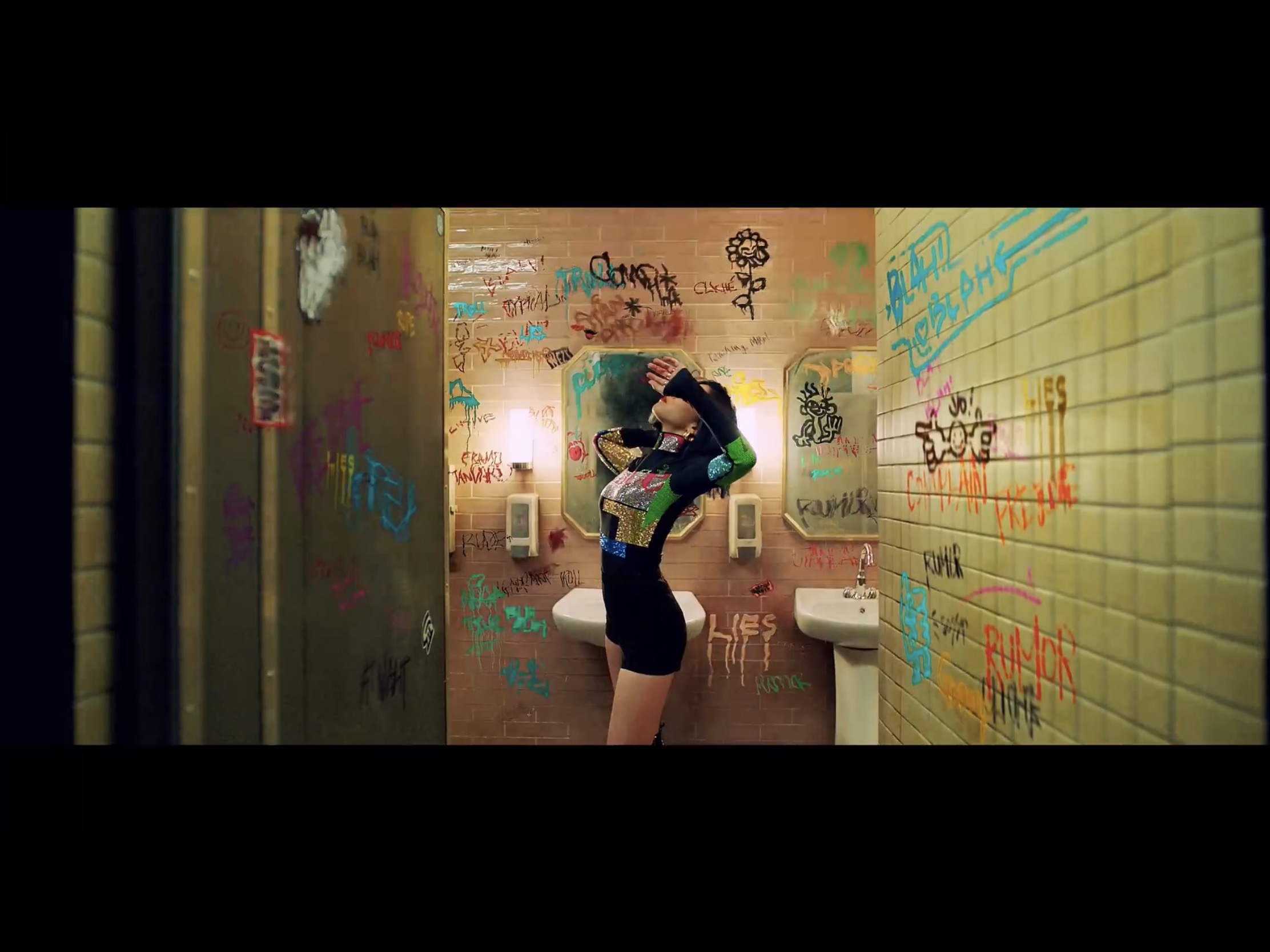ฉากนี้ของรยูจิน กราฟิตี้คำพูดต่างๆขยับอยู่ เปรียบเสมือน คำพูดแย่ๆเหล่านั้นมีชีวิตขึ้นมาได้ เพราะมีคนคอยพูดพวกมันออกมานั่นเองค่ะ แต่รยูจินไม่สนใจแล้ว เต้นสนุกอย่างเดียว “คำพูดพวกนั้นขอแค่เราไม่สนใจ มันก็ทำอะไรเราไม่ได้”