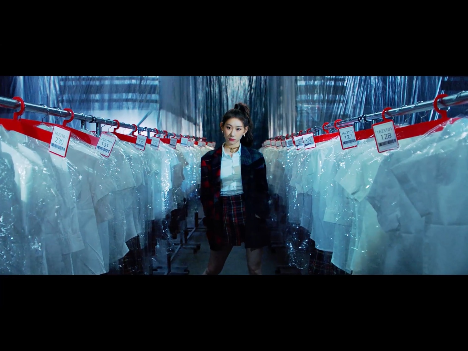 มาที่ยูนากันค่ะ ใน MV ยูนาคือนางแบบที่กำลังจะเดินแบบ และดูค่อนข้างกังวล บวกกับสีแดงสว่างเป็นพื้นหลัง ให้ความรู้สึกที่อันตราย ยูนาอาจกำลังรู้สึกไม่ปลอดภัย จากการไม่เป็นตัวของตัวเอง หลายคนอาจงง แต่อย่าลืมนะคะ นางแบบคือคนที่พรีเซ้นท์เสื้อผ้า อินเนอร์และคาแร็คเตอร์เปลี่ยนไปตามเสื้อผ้าที่ใส่ ความหมายใน MV อาจเล่นประเด็นเปรียบเทียบตรงนี้ค่ะ เสื้อผ้าที่ยูนาต้องใส่ขึ้นรันเวย์ เป็นสัญลักษณ์ของกรอบหนึ่งที่กำหนดให้เราเปลี่ยนเป็นแบบนั้นแบบนี้เรื่อยๆ แล้วไหนล่ะความเป็นตัวเอง? อีกอย่างเสื้อที่ยูนาใส่อยู่ตอนนี้ก็เป็นสีดำ เป็นสีที่ให้ความรู้สึกหดหู่