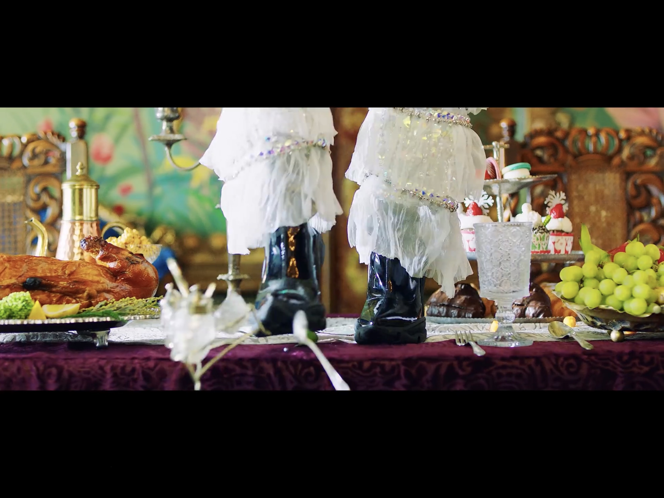 การที่ลีอาเดินอยู่บนโต๊ะอาหารที่เต็มไปด้วยอาหารและของประดับตกแต่งต่างๆ เปรียบเสมือน การเดินไปในเส้นทางที่คนอื่นๆบอกว่าไม่ควรเดิน หรือ เส้นทางที่มีอุปสรรค สังเกตได้ว่าลีอาจะดูเกร็งๆ เพื่อไม่ให้ไปเตะกับของที่อยู่บนโต๊ะ หรือนี่จะเป็นอีกสัญลักษณ์หนึ่ง ที่บ่งบอกว่าลีอาจะต้องอยู่ในกรอบจริงๆ