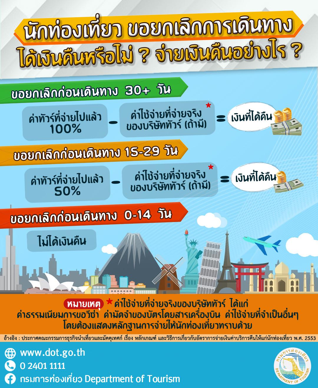 วันนี้ 11 มีนาคม ุ63 มีผลบังคับใช้ การจ่ายเงินค่าบริการคืนให้แก่นักท่องเที่ยว กรณียกเลิกการเดินทาง