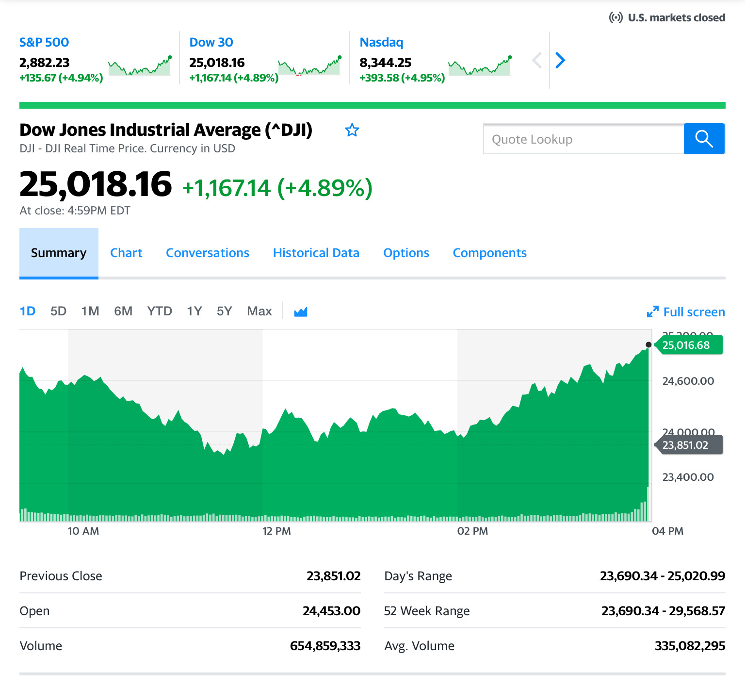 BREAKING NEWS!! ดาวโจนส์พุ่งแรงกว่า +1,985.00 จุด ดอลลาร์พุ่งแรง