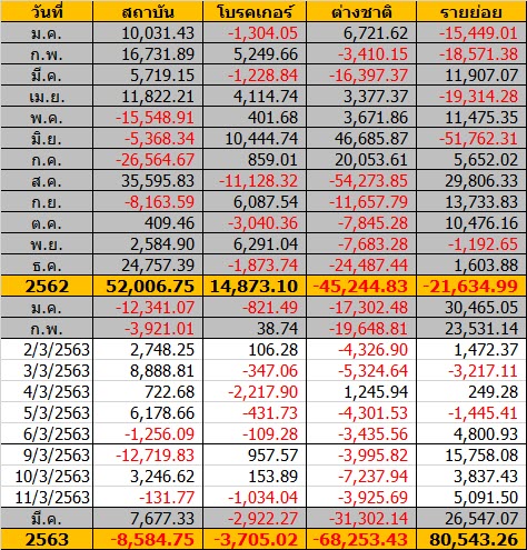 Sinthorn Summary 13/3/2563 : ต่างชาติขายสุทธิ -3,925.69 ลบ.