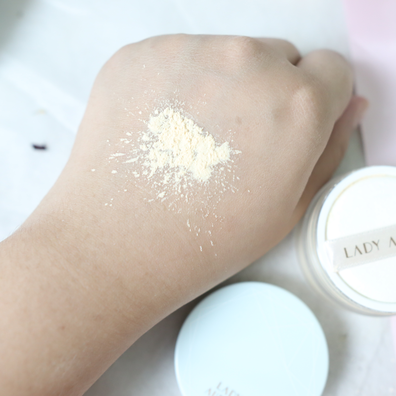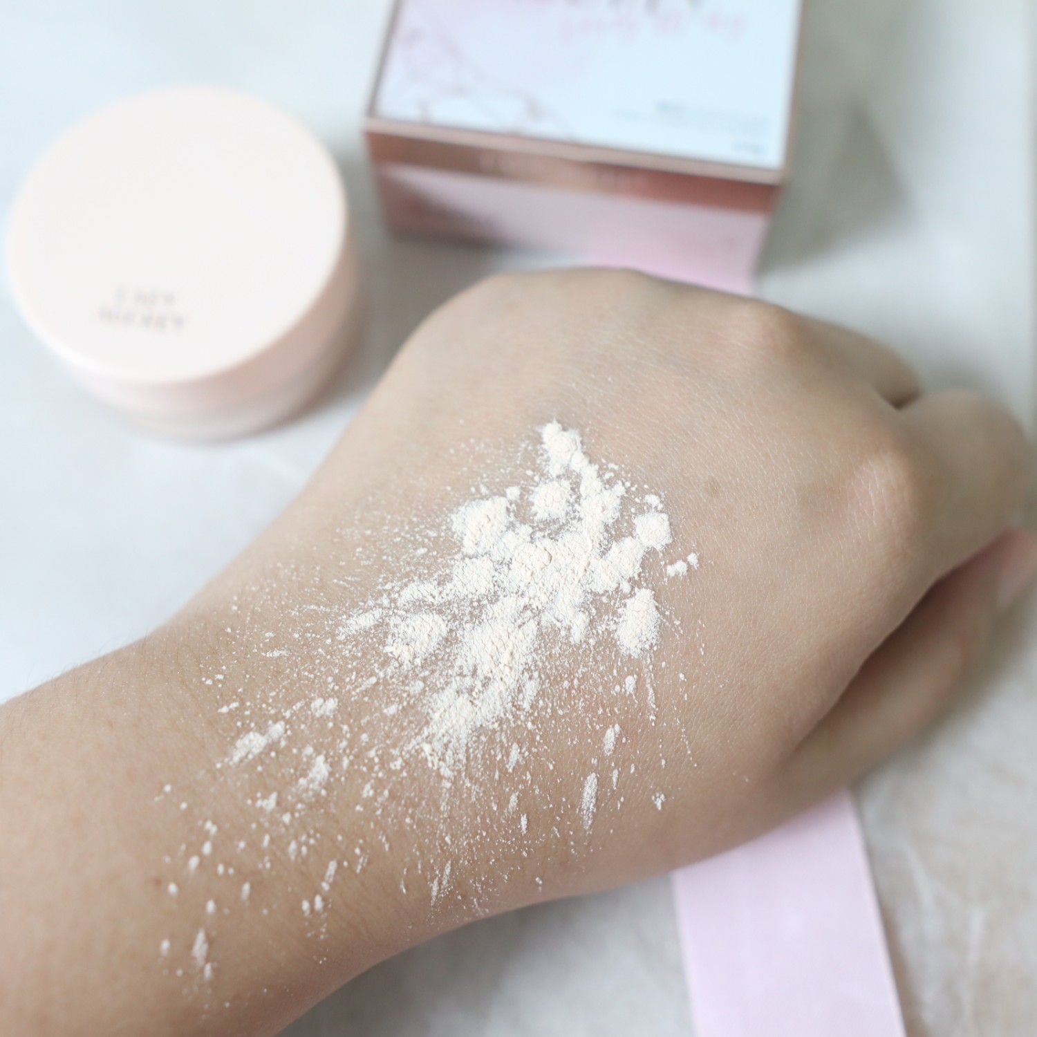 แป้งไม่จับเป็นก้อนทำให้เราลงแป้งฝุ่นได้ง่าย เซทเครื่องสำอางได้ดี ให้ไม่เยิ้มระหว่างวัน