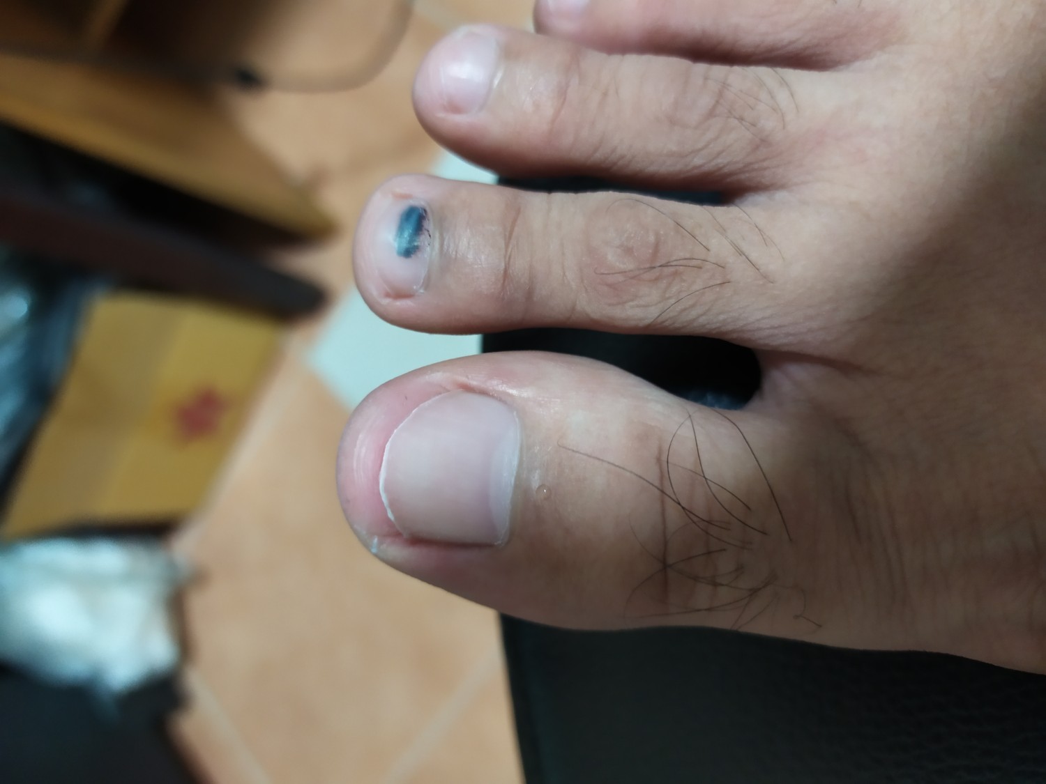 คือเผลอทำถ้วยตกใส่เท้า แล้วนิ้วเท้าห้อเหลือด