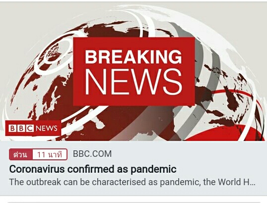 WHO ประกาศแล้ว Coronavirus เป็น pandemic
