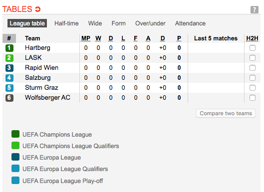 ผมจะให้ดูตารางการเเข่งในประเทศ ออสเตรียว่า ใครเป็นผู้นำอยู่