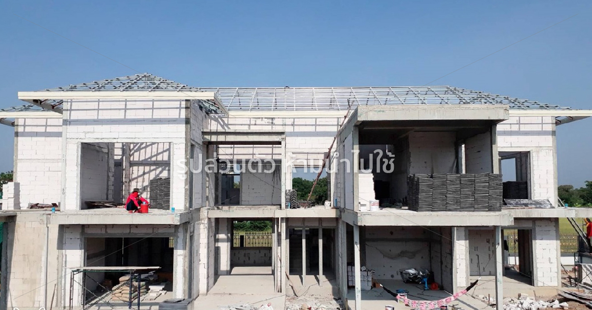 เริ่มเป็นรูปเป็นร่าง วางโครงหลังคา ก่ออิฐ ติดวงกบประตู-หน้าต่าง