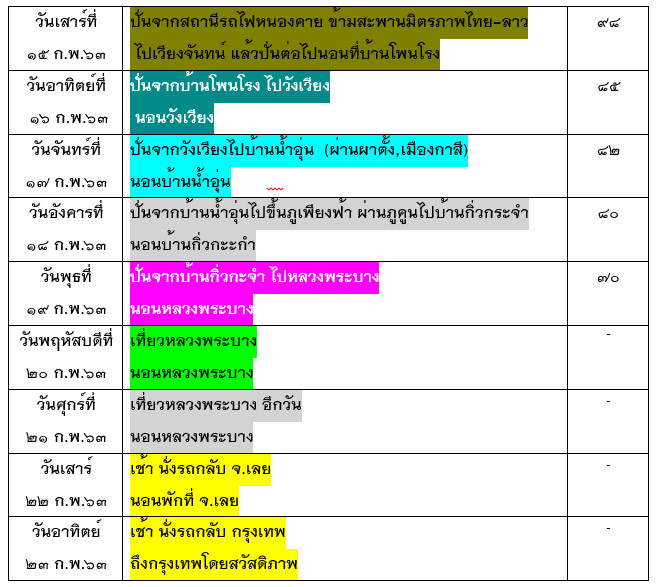 วันที่ 1 สถานีขนส่งโดยสารหนองคาย – บ้านโพนโฮง (ระยะทาง 98 กม.)