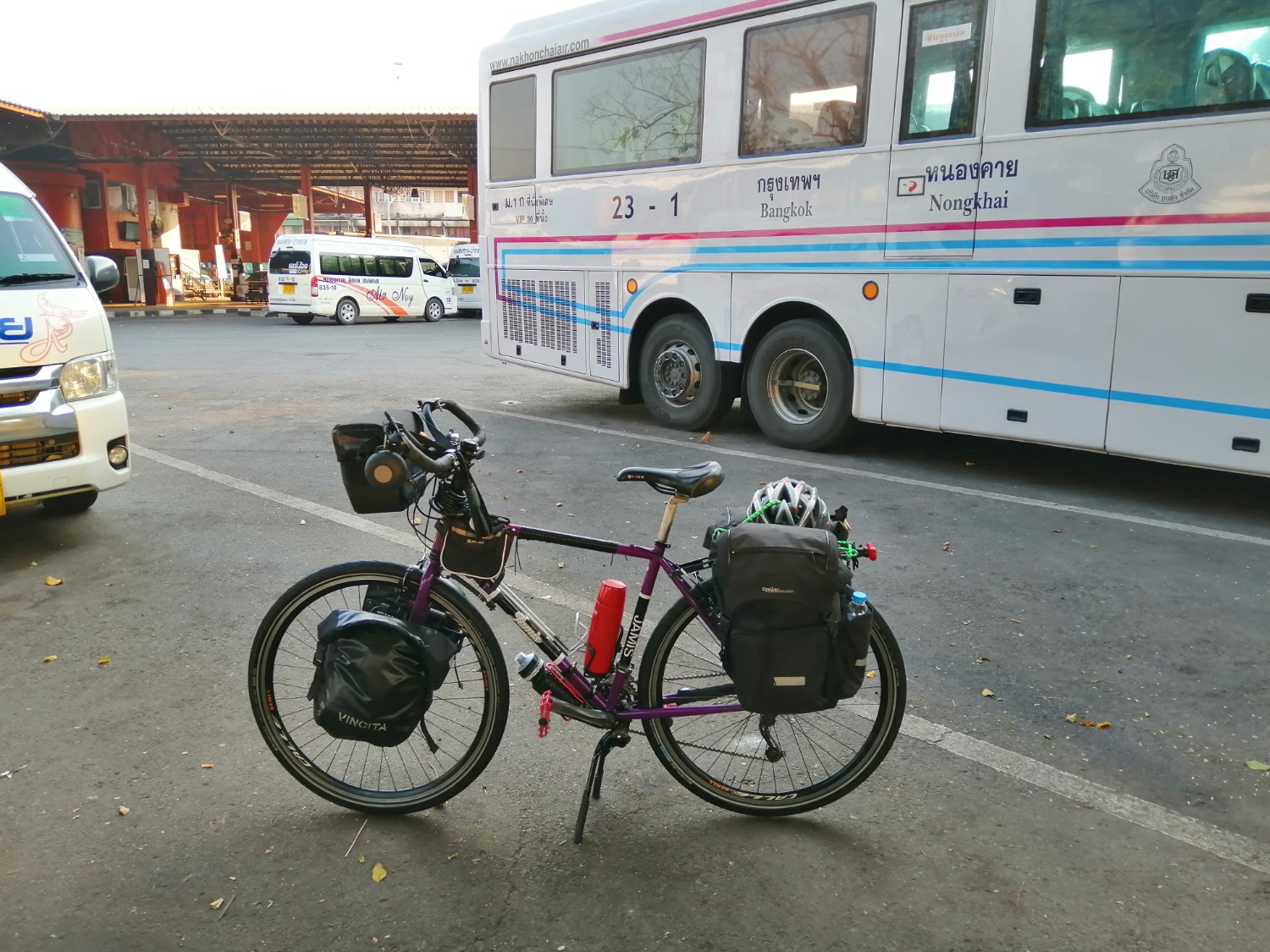 หลังจากผมลงรถทัวร์ ผมก็นำจักรยานออกมาประกอบแล้วแพ็คกระเป๋า เพื่อเดินทางไปยังด่านตรวจคนเข้าเมืองสะพานมิตรภาพไทย-ลาวทันที