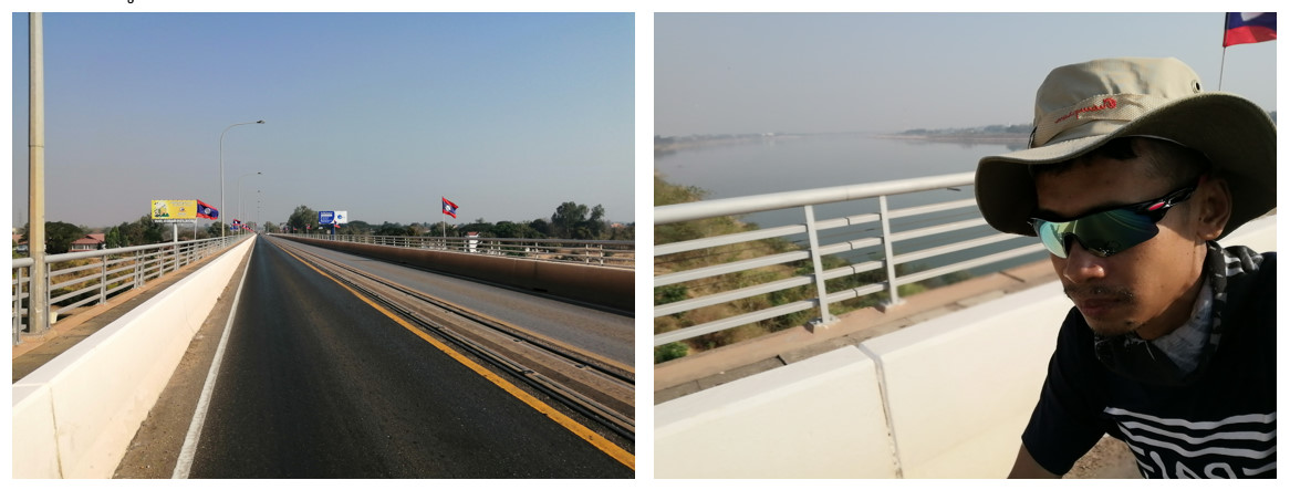 จากนั้นก็ปั่นจักรยานข้ามสะพานมิตรภาพไทย-ลาวทันที บรรยากาศสองข้างทาง เห็นแม่น้ำโขงที่เป็นพรมแดนไหลผ่านลอดใต้สะพาน ผมรู้สึกตื่นเต้นทันที ที่ได้ปั่นจักรยานข้ามเข้าไปในประเทศลาวครั้งแรก โดยเฉพาะยิ่งมาคนเดียวด้วย