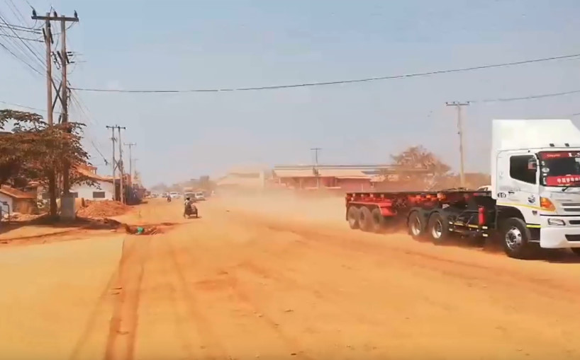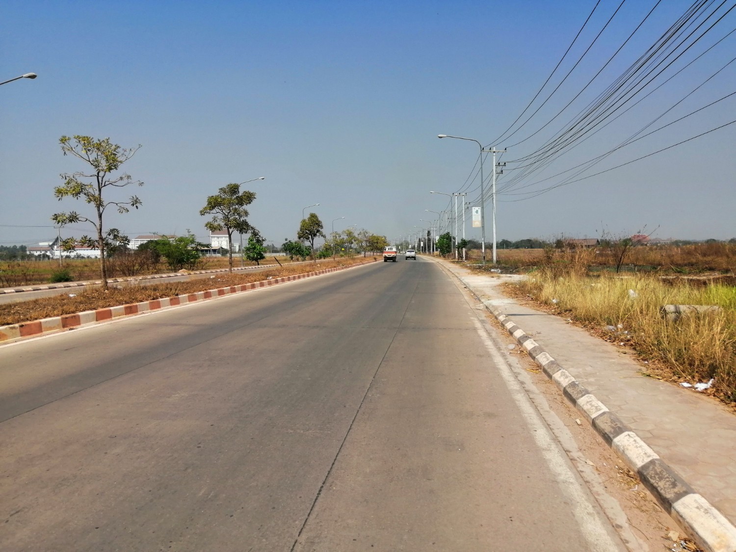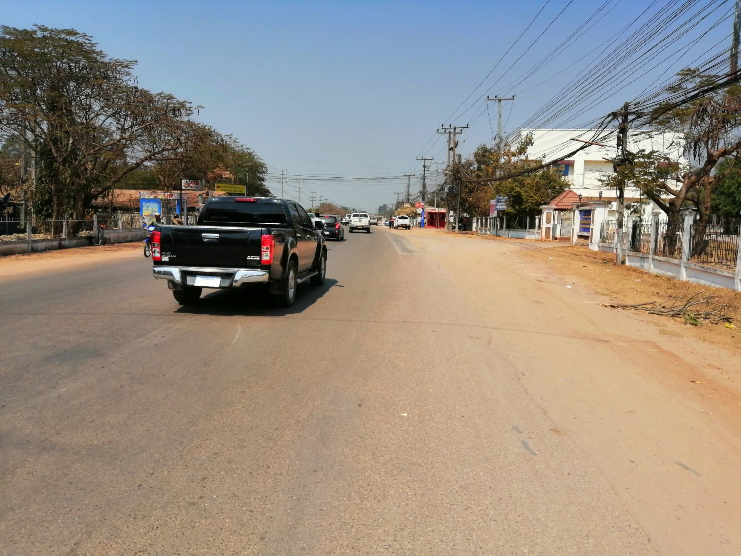 พอพ้นตัวเมือง เวียงจันทน์ ถนนบางช่วงอยู่ในช่วงกำลังสร้างทาง ฝุ่นค่อนข้างเยอะครับ ถนนแดง พื้นดินบ้านเขามันจะเป็นดินแดง แห้งๆ