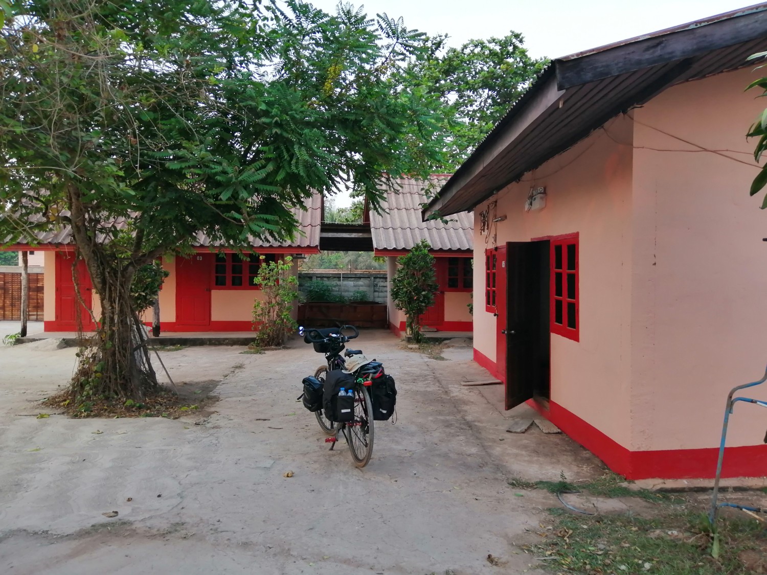 ผมปั่นไปหาที่พัก ซึ่งที่พักที่ผมตั้งใจจะนอนก็คือเฮือนพักทวีชัยเกสเฮ้าส์ แต่ปรากฏว่ามีทัวร์จีนมาใช้บริการกันเต็ม (ตอนนี้เชื้อโคโรน่ากำลังระบาด) “อยู่ไม่ได้แล้วครับพี่น้อง เผ่นก่อนล่ะตรู” สอบถามชาวบ้านแถวนั้น บอกว่าไม่ไกลจะมีเฮือนพักอยู่อีก 1 แห่งชื่อ เปเป้ เก็สเฮ้าส์ ผมจึงรีบปั่นไปหาทันที เพราะนี่พระอาทิตย์ใกล้ตกดินใกล้มืดแล้วด้วย
