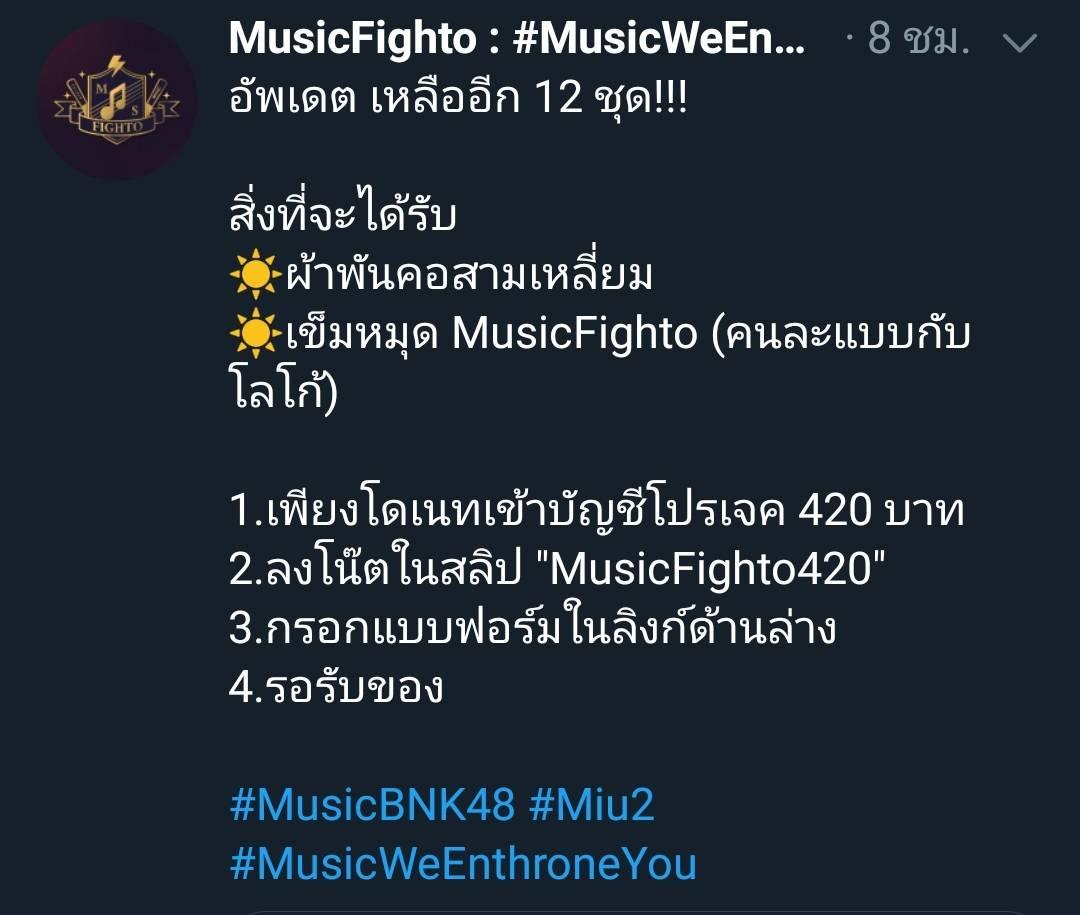 ดีจร้า.....วันนี้จะขอประชาสัมพันธ์สำหรับแฟนคลับน้อง MusicBNK48 ในช่วงโค้งสุดท้าย