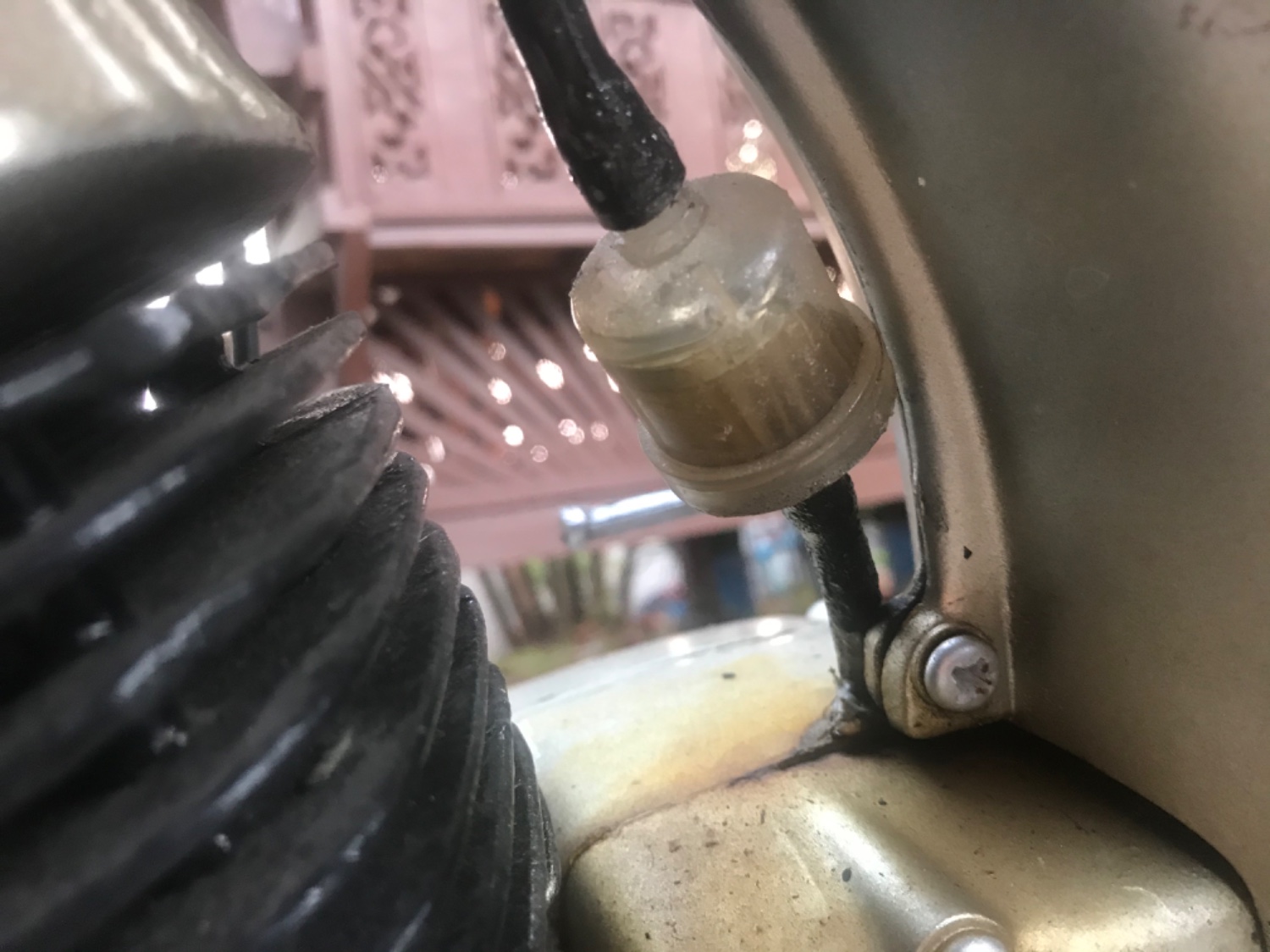 เติมน้ำมันเต็มถังเมื่อเช้า แล้วน้ำมัน มันไหลออกจากท่อเล็กอยู่ข้างขาตั้งอ่ะครับ ไม่รู้ว่าเป็นเพราะอะไรครับ ผู้รู้ช่วยห