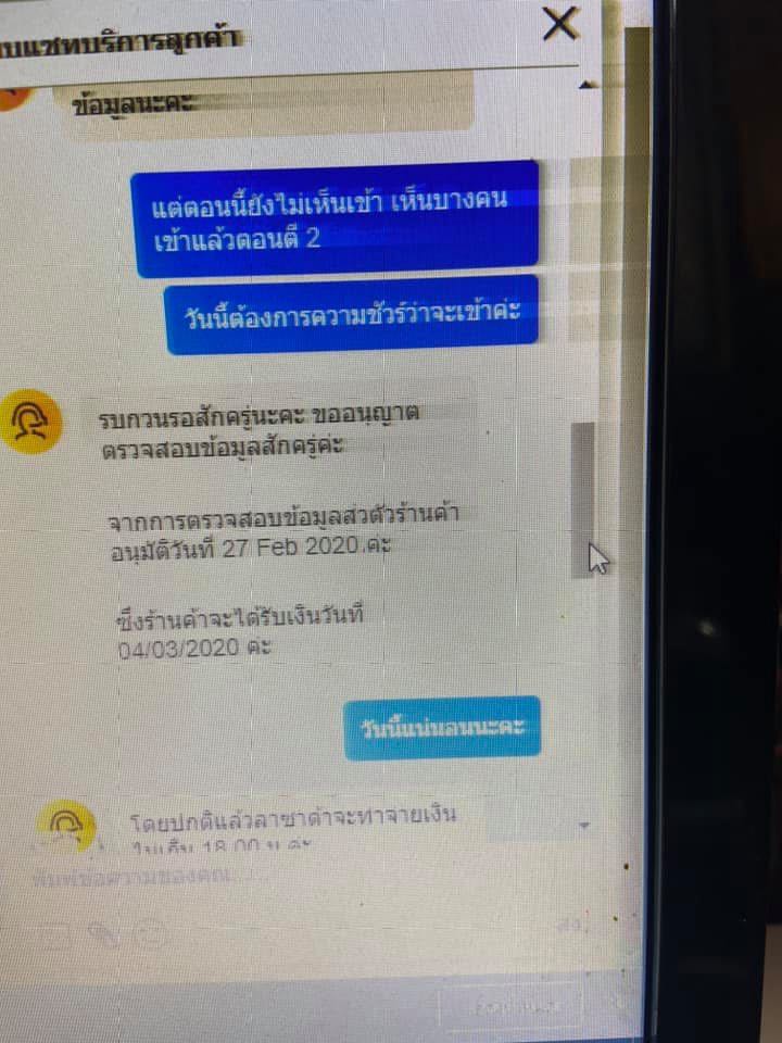 จน 4มีนา ตอนเย็นก็ไม่เข้า (เพราะส่วนใหญ่ เห็นในกลุ่ม ลาซาด้า บอกจะเข้าตอนตี3) เลยแจ้ง ไปที่ศูนย์ช่วยเหลือที่เอาไว้แชทกับร้านค้า