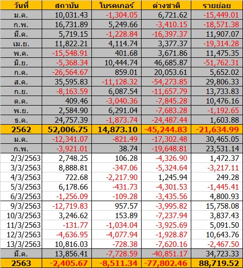Sinthorn Summary 13/3/2563 : ต่างชาติขายสุทธิ -7,620.16 ลบ.
