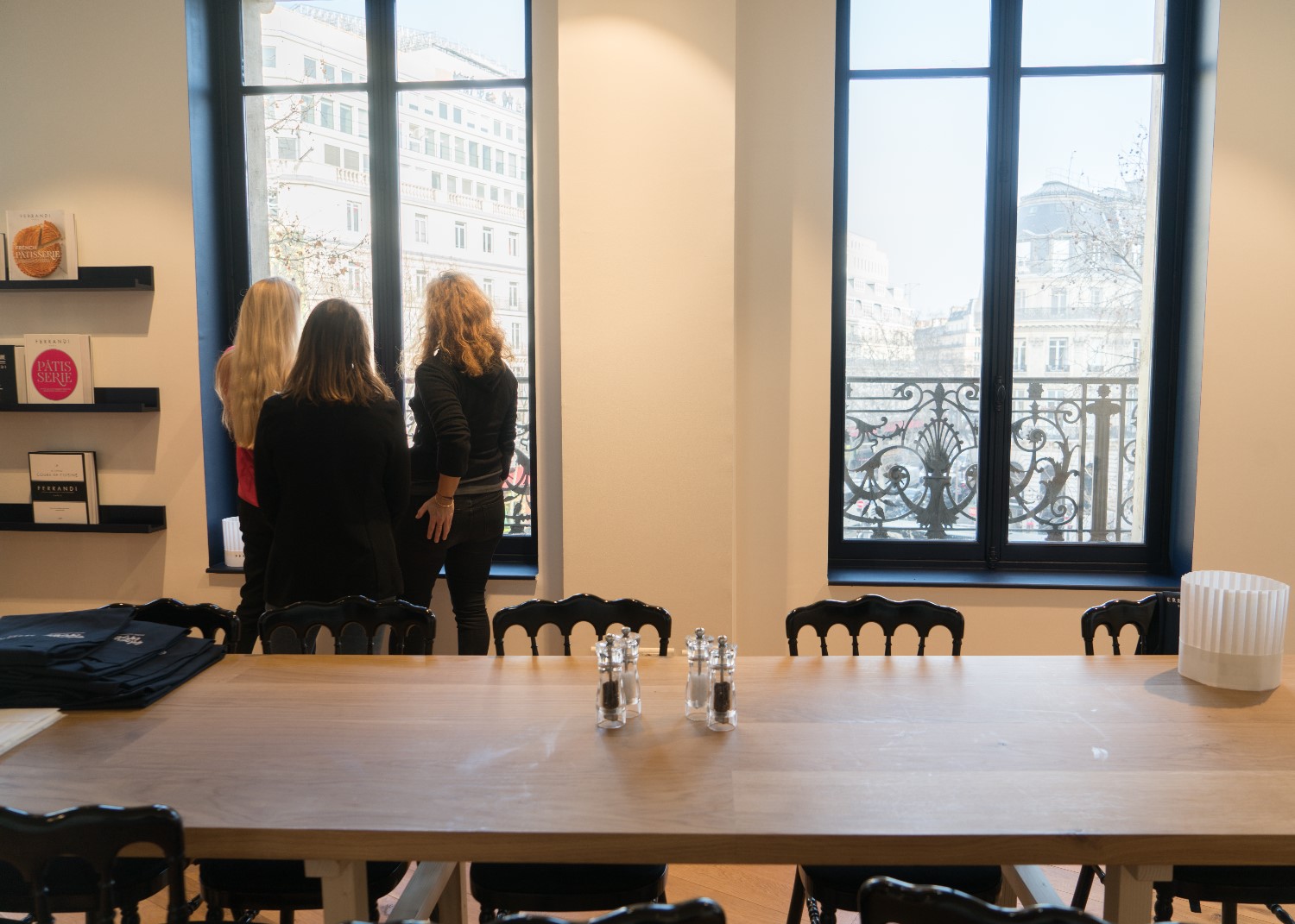 หลังจากฟังบรรยายสั้นๆจากเชฟพาโบลเสร็จก็ถึงเวลาเข้าสู่บริเวณครัว ซึ่งเป็นห้องกระจกขนาดใหญ่ที่มองออกไปเห็นโรงอุปรากรณ์ Opéra Garnier และตึกกาแลรี่ ลาฟาแยตต์กูโปล (Galeries Lafayette Coupole) ซึ่งนับว่าเป็นอาคารสถาปัตยกรรมสุดอลังในย่านนี้