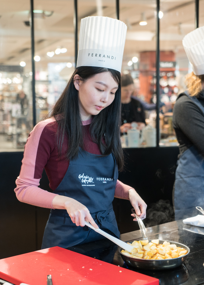 นอกจากนี้ยังมีกิจกรรมน้องใหม่อย่าง "ห้องเรียนทำอาหารฝรั่งเศส" ซึ่งเป็นจับมือกันระหว่างโรงเรียนสอนทำอาหารชื่อดังอย่าง Ferrandi Culinary School และ Galeries Lafayette จนเกิดเป็นคลาสเรียนทำอาหารสุดเอ็กซ์คลูซิฟนี้ขึ้นมา ผู้ที่เข้าร่วมกิจกรรมนี้จะได้เรียนรู้วิธีการทำอาหารและเคล็ดลับในการทำอาหารฝรั่งเศสจากเชฟ เรียกได้ว่าเป็นโอกาสแสนพิเศษสำหรับใครที่หลงรักการทำอาหารและอยากทำความเข้าใจกับเคล็ดลับของอาหารฝรั่งเศส ทั้งคาวและหวาน เมนูจากคลาสเรียนทำอาหารนี้ มีทั้ง "หอยเชลล์กับซอสวานิลลาเเละหัวผักกาด" (Scallops and vanilla parsnip mousseline) อกเป็ดย่างราดซอสบีทรูท (Duck breast served with root vegetables) ทาร์ตแอปเปิ้ล และอื่นๆให้เลือกอีกมากมาย ไม่ว่าคุณจะเคยทำอาหารมาก่อนหรือไม่ก็ไม่ต้องกังวล เพียงแค่คุณมีใจรักที่อยากจะเรียนรู้วิธีการทำอาหารฝรั่งเศสเเท้ๆ