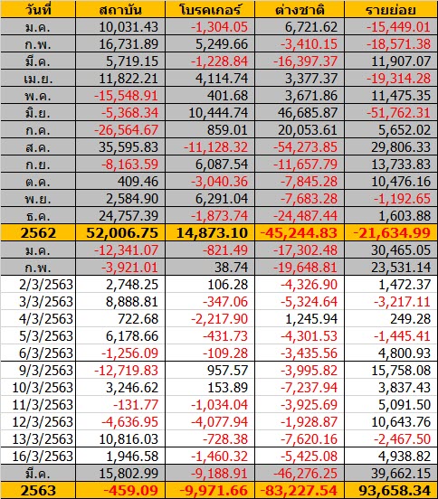 Sinthorn Summary 16/3/2563 : ต่างชาติขายสุทธิ -5,425.08 ลบ.