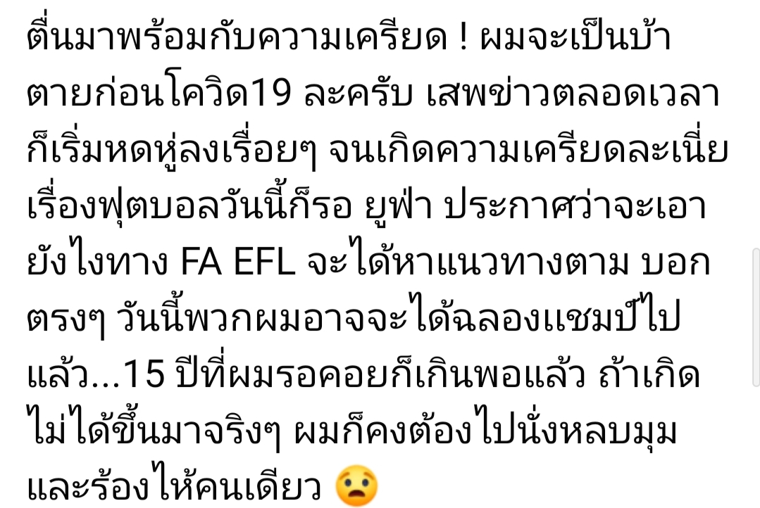 ผมเป็นแฟนผี แต่ก็ขอแสดงความยินดีกับเหล่าพรี่ๆลิเวอร์พูลด้วยนะครับ เมื่อวานผมนอนไว เพราะต้องทำงานเช้า ตื่นขึ้นมาพอรู้ว่าลิเวอร์พูลชนะ ก็นึกว่าจะได้เห็นภาพชูถ้วย แต่พยายามหาก็เหมือนว่ายังไม่มี แต่เท่า