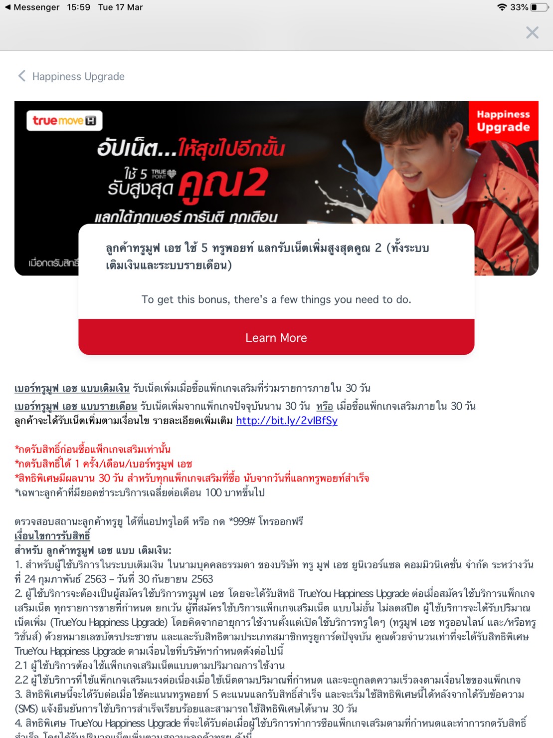 อัปเน็ตให้สุขไปอีกขั้น ลูกค้าทรูเรดใช้5ทรูพอยท์อัปเน็ตเพิ่ม100%จากแพ็กหลัก/เสริม(ลูกค้าเติมเงินแลกก่อนซื้อแพ็กเสริม)นาน30วัน 24ก.พ.-30ก.ย.63 แลกทางแอปทรูไอดี คลิก bit.ly/3ckASP3