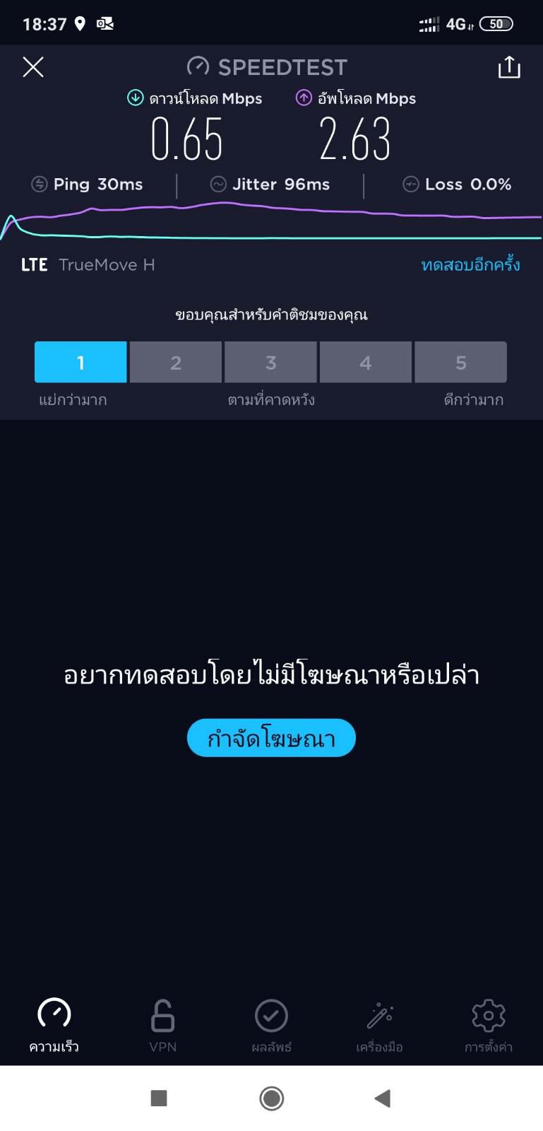 ผลทดสอบความเร็วเน็ต Max speed ระหว่าง Ais กับ Truemove H