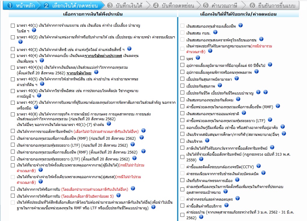 ในส่วนอื่นๆ มีรายการให้เลือกใส่ เช่น 40(1)ค่าจ้าง, 40(4)(ข)เงินปันผล กำไรกองทุนรวม ตั้งแต่ 20 สิงหา