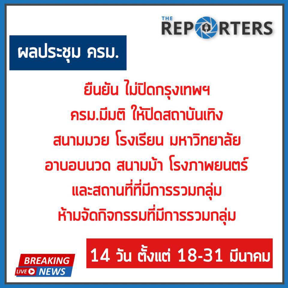 ส่วนไทยก็อย่างที่ทราบ ปิดโรงเรียน สถานบันเทิง สถานที่ที่มีการรวมตัวตามนี้