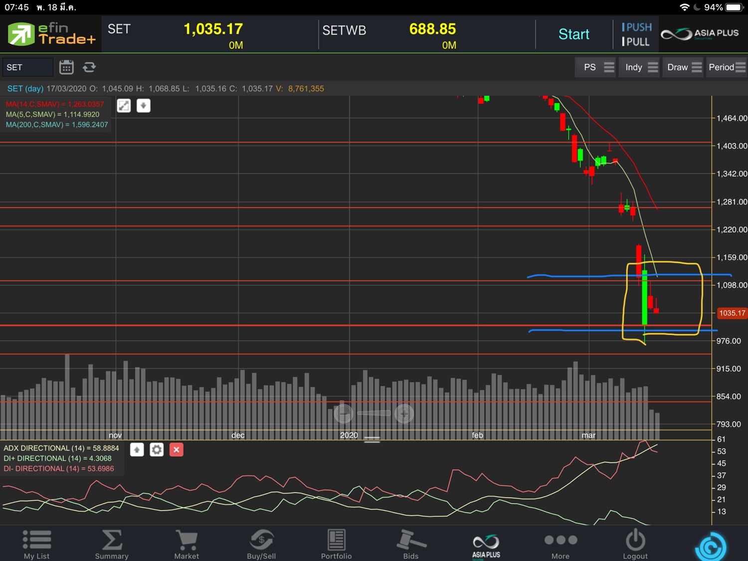 กองสร้างแท่งเทียนไต่ทรงขึ้นมาดี แนวรับ 1188—1180—-1170 แต่แนวต้านจะไปแค่ไหนค่อยว่ากัน เมื่อวานยัน1188 ได้ กลับยืนแข็ง จะพิจารณาช้อตต่อเมื่อหลุด 1180 ก่อน กราฟ เซต50 เน้นดูหลุด 753 แกว่