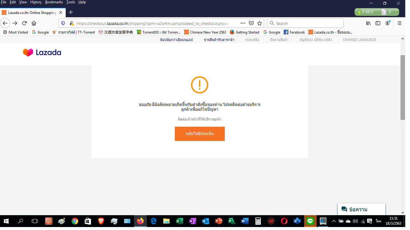 lazada ขึ้นว่า มีข้อผิดพลาดของท่านในการสั่งซื้อบริการ แล้ว ก็ทำอะไรไม่ได้ เป็นอะไรครับ
