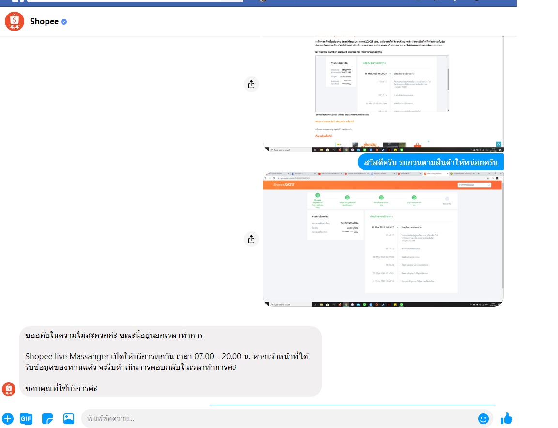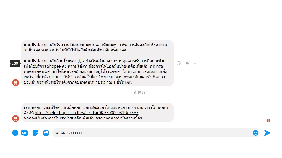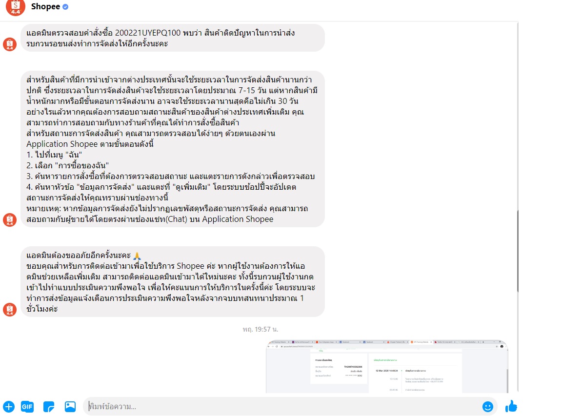 เลยแจ้งshopee ช่องทางเดิม นางก็ขอหมายเลขคำสั่งซื้อ แล้วก็ตอบคำถามpatternเดิมๆเปํะ