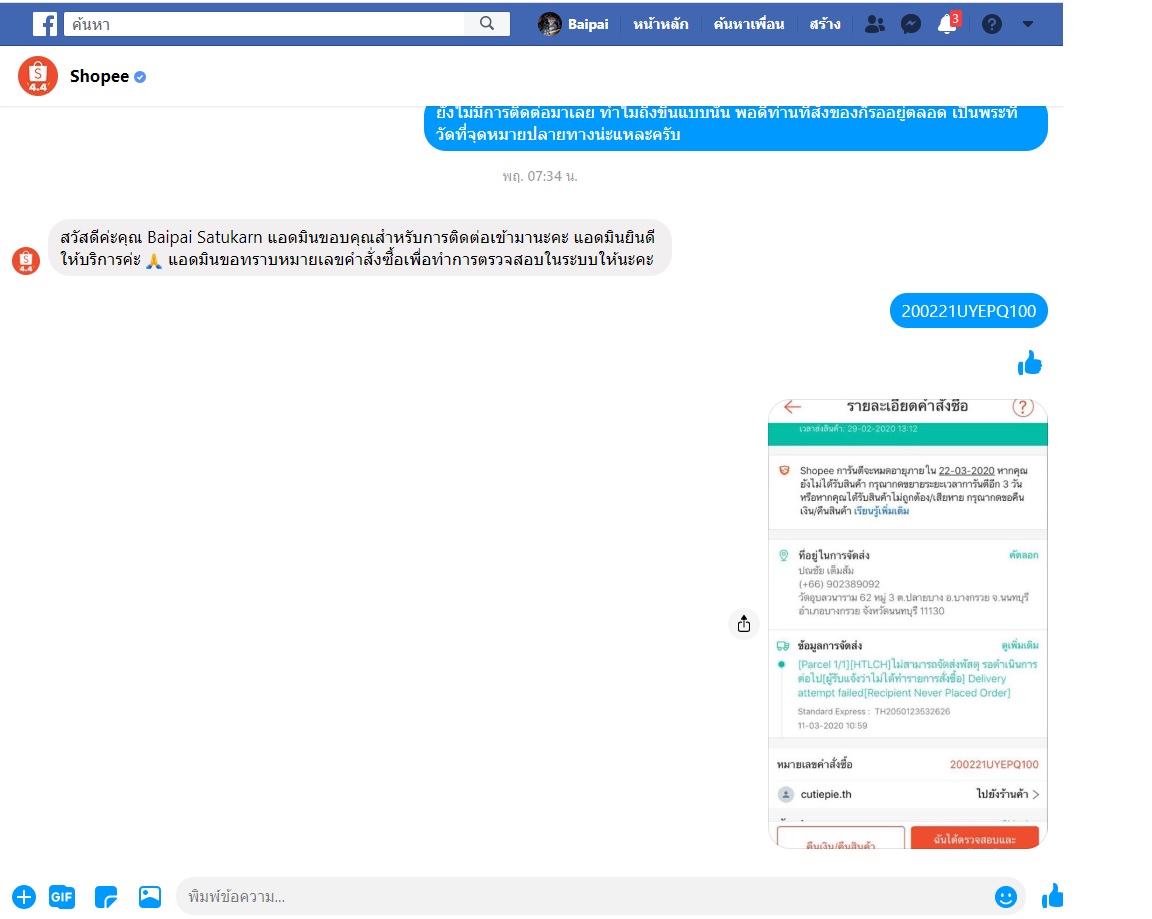 แต่ไม่เป็นไร ติดต่อshopee ให้เลขคำสั่งซื้อไปตามที่ขอ