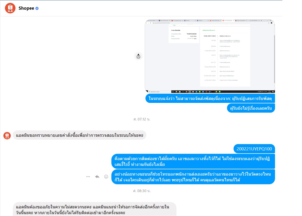 สรุปคือไม่มีการประสานอะไรให้เลย ขนส่งทำงานห่วยๆยังไง shopeeก็ปล่อยตามเลย ทำงานเป็นระบบดีมาก