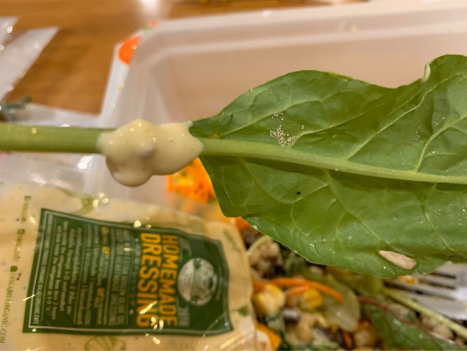 ซื้อสลัดธัญพืชมารับประทาน กินไปครึ่งทางเห็นไข่ของอะไรไม่ทราบติดมากับผัก