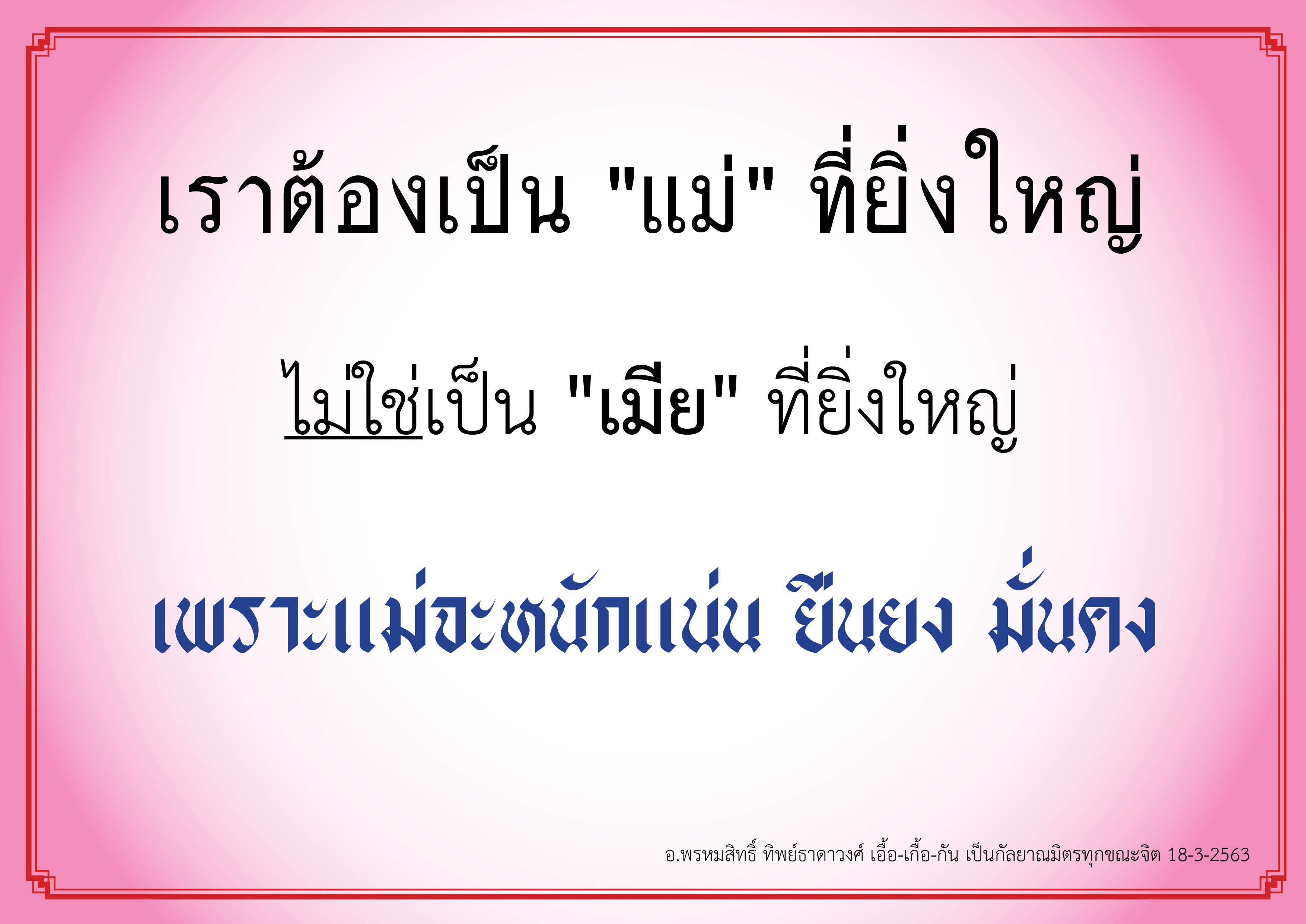 เราต้องเป็น "แม่" ที่ยิ่งใหญ่ ไม่ใช่เป็น "เมีย" ที่ยิ่งใหญ่