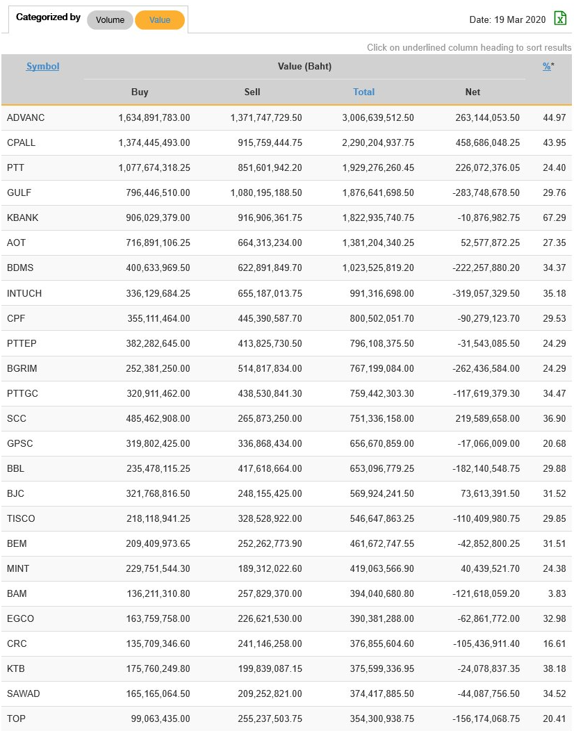 นักลงทุนต่างชาติ NVDR ซื้อ-ขาย มูลค่าสูงสุด 25 อันดับ 19/03/63