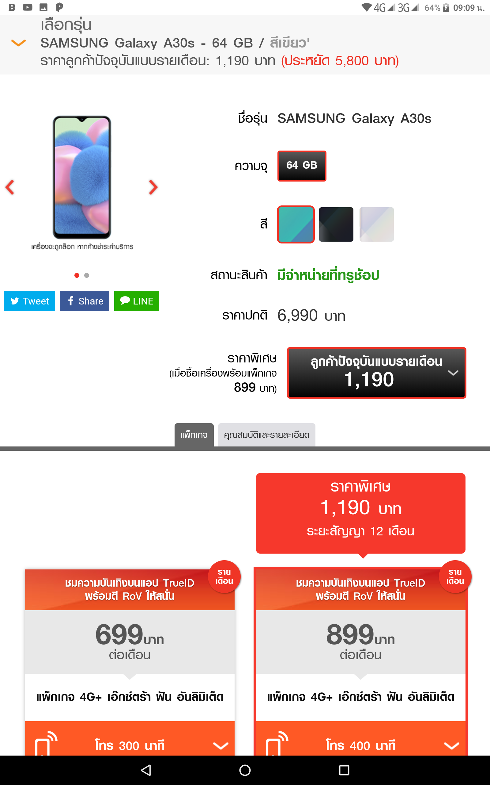 สอบถาม true หน่อยครับ โปรซื้อมือถือ samsung a30s ณ ปัจจุบัน คือตามนี้ใช่มั้ย