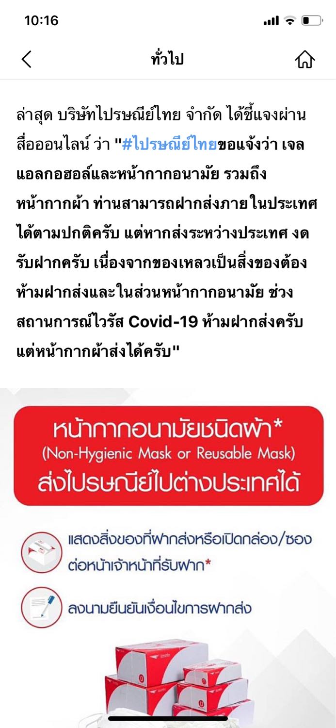 ไปรษณีย์ไทย ไม่ห้ามส่งภายในประเทศนะครับ