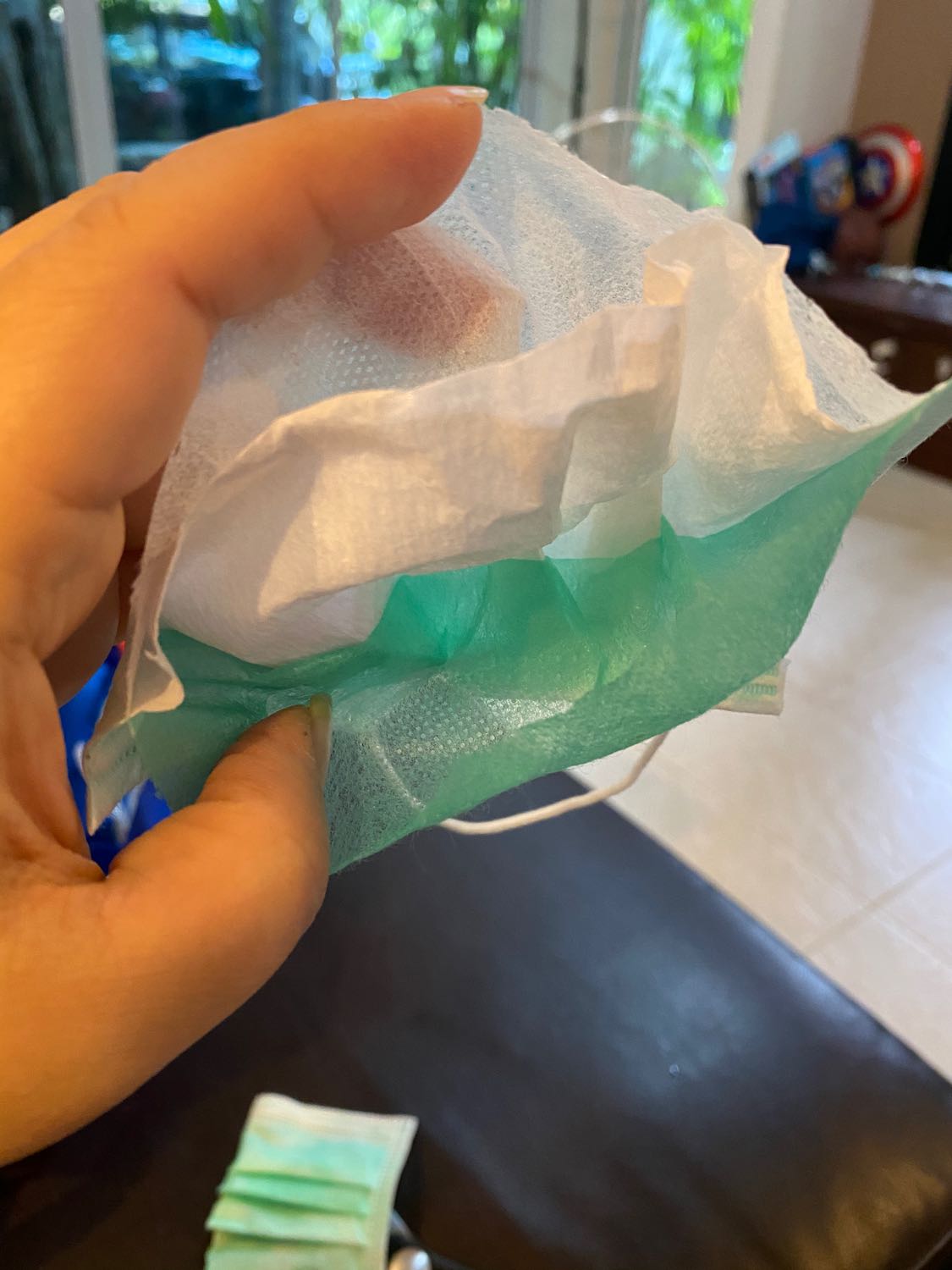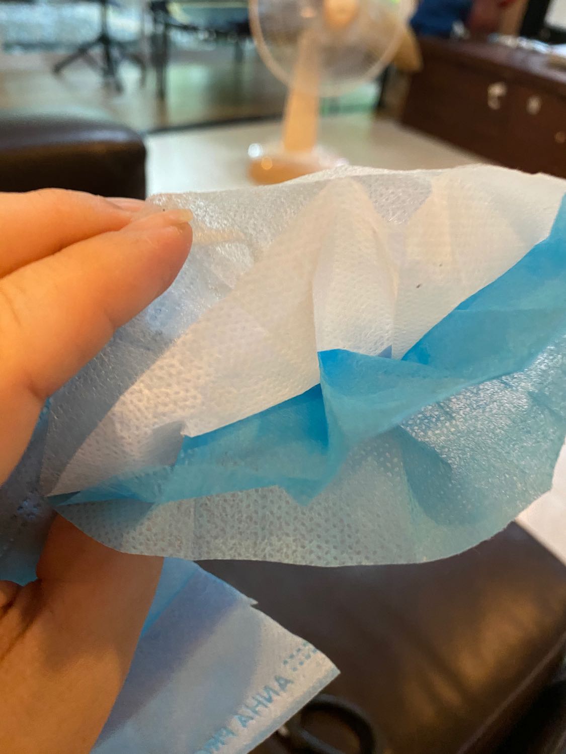 ซื้อหน้ากากอนามัยมาใช้กันฝุ่นตอนทำความสะอาด ได้สีดำมา ใช้ไป แรกๆ ก็ไม่เจอปัญหา พอทิ้งไว้หลายเดือน จะทำความสะอาด พอหยิบออกมา เห็นคราบเชื้อราบนหน้ากาก จางๆ ต้องทิ้งที่เหลือทั้งหมดเลย หน้ากากอนามัย ถึงต