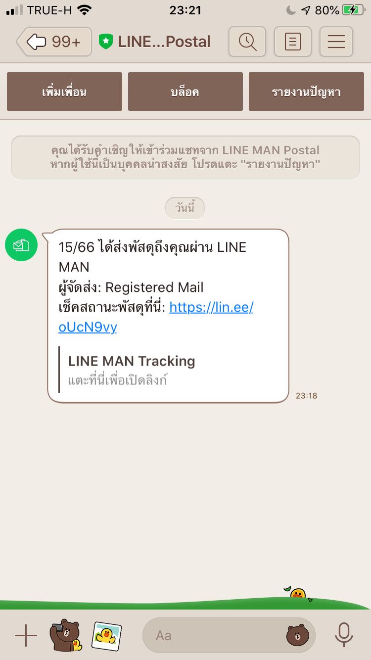 อยู่ๆก็มีไลน์เด้งพร้อมกับข้อความของไลน์แมน งงมาก คือเราไม่ได้สั่งไลน์แมน แต่ทำไมมีข้อความ เรางงมาก แล้วแบบนี้พัสดุจะถึงเราไหม