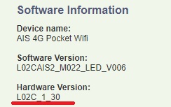 สังเกตว่า ถ้าเป็นตัว M028A pocket Wifi จะมีรหัส Hardware ขึ้นต้นด้วย L02C แต่ทางเจ้าหน้าที่เอาตัว P05I มาวางไว้แทน